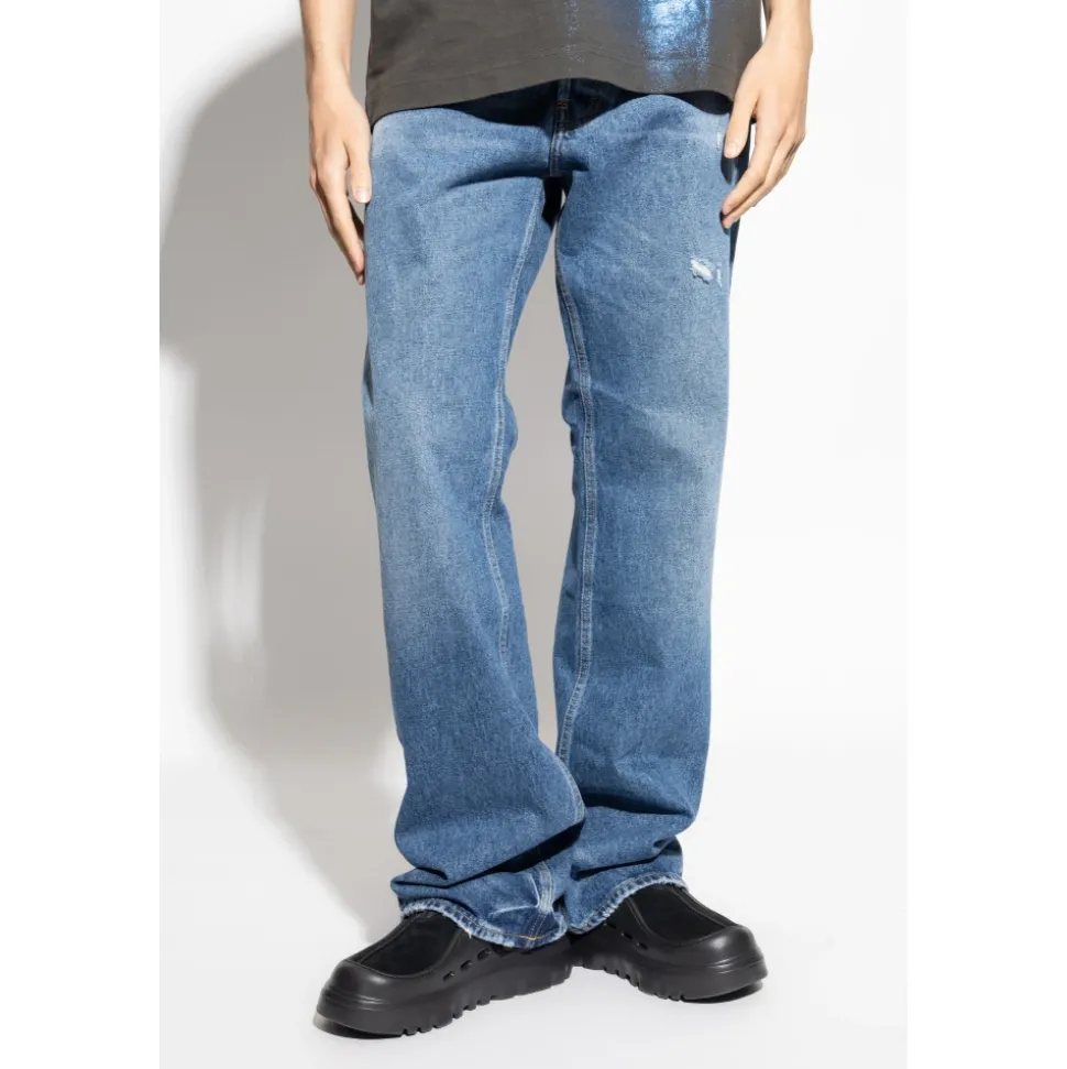 Acne Studios 2010M Jeans opdaterer vintage denim med en fast, ikke-strækbar bomuldskonstruktion for et struktureret, slidt udseende, der passer til hverdagsbrug. Vigtige egenskaber: Mellemblå | Bomuld | Fast, ikke-strækbar denim | Holdbar struktur | Femlommekonstruktion | Knaplukning | Bæltestropper | Læderpatch | Robuste nitter | Vasket, vintage effekt | Lysebrune stikninger | Dekorative nitter | Lige ben | Lang længde | Dimensioner & pasform: Modelhøjde: 193 cm | Bryst: 95 cm | Talje: 82 cm | Hofter: 93 cm | Modellen er iført størrelse: L | Regular fit | Høj talje | Fuld længde ben | Lige ben | Sammensætning & pleje: 100% bomuld | Patch: 100% koskindslæder | Maskinvask ved 30°C.