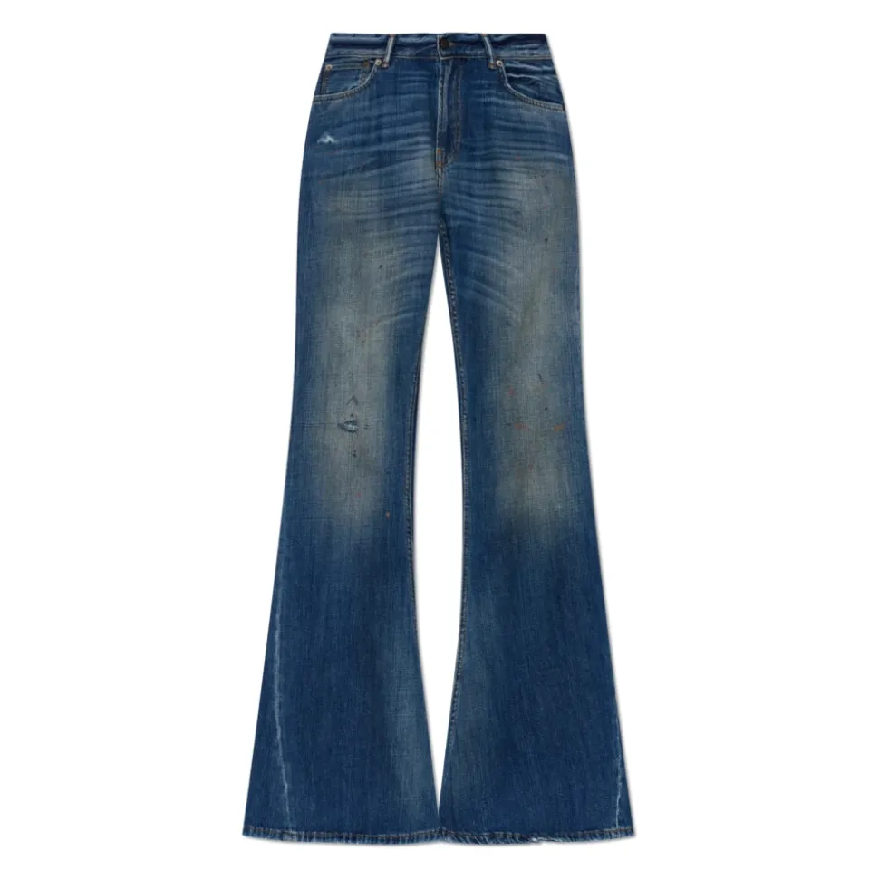 Acne Studios 2025F Flared Jeans kombinerer en vintage-vasket finish med subtile slidmærker og en raffineret bootcut-silhuet, designet til hverdagsstil med et langt, markant ben. Nøgleattributter: Mellemblå | Bomuld | Letvægt | Holdbar | Non-stretch denim | Femlomme-finish | Lynlåsgylp | Bæltestropper | Metalfarvet hardware | Vasket effekt | Fine slidmærker og malerpletter | Orangebrun syning | Rektangulært brand-patch over baglomme | Dimensioner & pasform: Høj talje | Skinny boot leg | Lang længde | Sammensætning & pleje: Ydermateriale: 100% Bomuld | Patch: 100% Koskindslæder | Maskinvask ved 30°C.