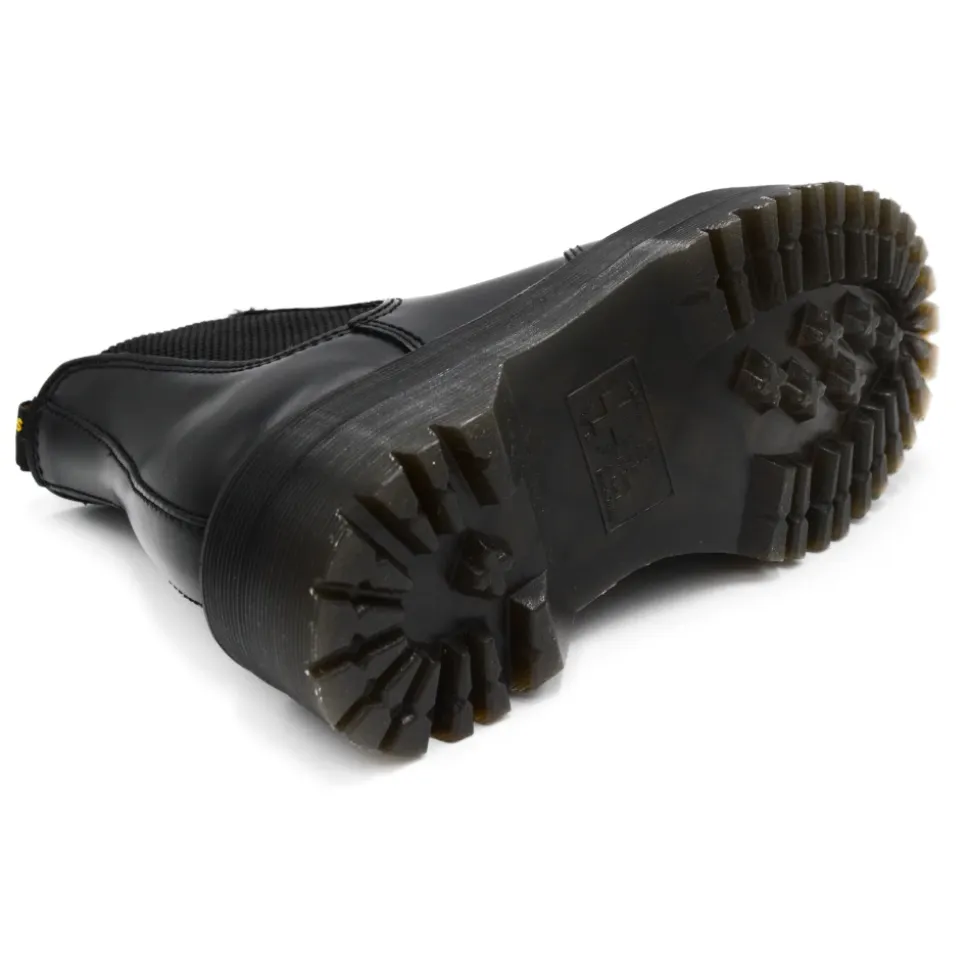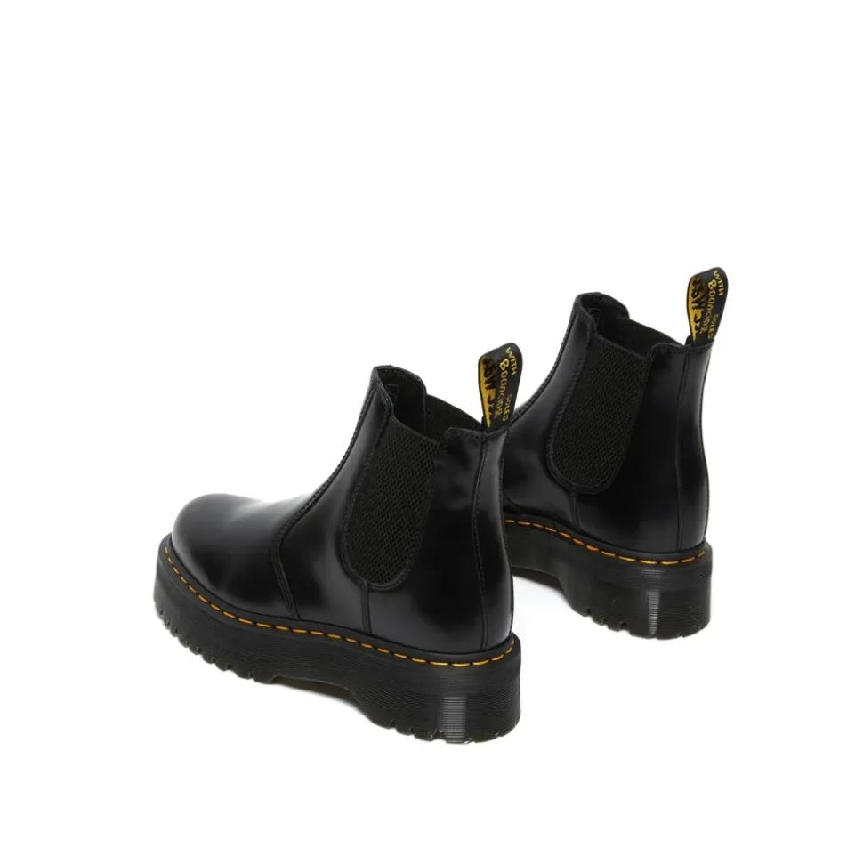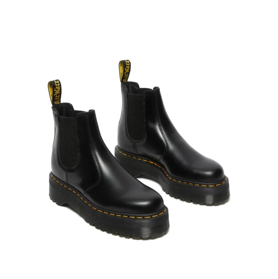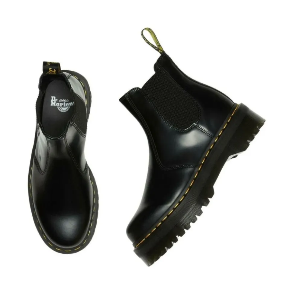 Træd ud i stil med disse sorte Dr. Martens ‘2976’ Chelsea-støvler til kvinder. Lavet af glat kalveskind med kontrastgule syninger, elastiske sider, rund tå, træktab ved hælen og lav blokhæl. Sålens højde: 3,8 cm.