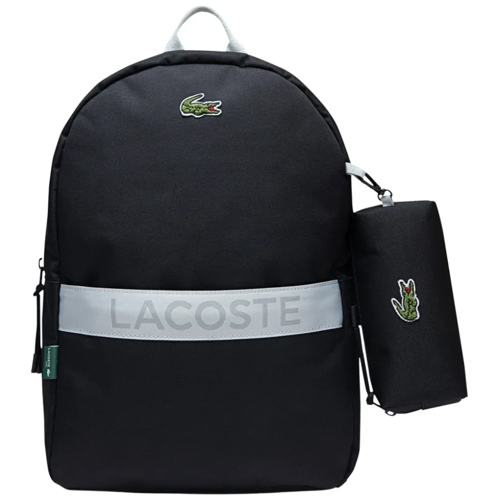 Lacoste 3-lags rygsæk med penalhus kombinerer sporty detaljer med praktisk anvendelighed i hverdagen. Den er designet til organiseret opbevaring og har et aftageligt penalhus og polstrede stropper, der gør den behagelig at bære. Vigtige egenskaber: Sort | Polyester | Hovedrum med dobbelt lynlås | Flere opbevaringslommer | Polstrede justerbare stropper | Markant logobånd | Ikonisk krokodilleemblem | Matchende aftagelig pose | Mål og pasform: 17 x 12 x 6 cm | Sammensætning og pleje: 100 % polyester