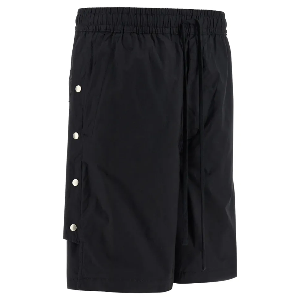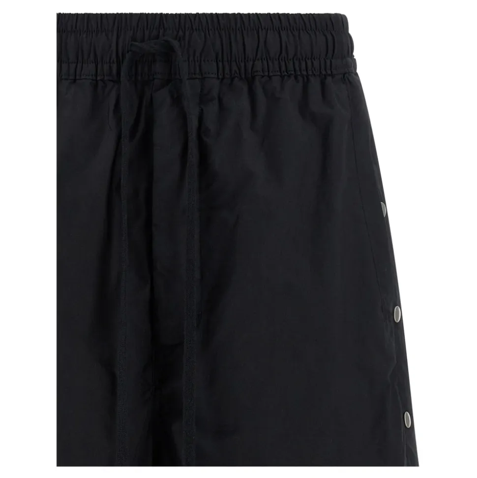 Thom Krom 33 Bermuda Shorts er bermudashorts med brede ben designet til en afslappet silhuet med lav skridtlængde og justerbare sideslidser for alsidig styling. Vigtigste egenskaber: Sort | Bomuld | Let stretch | Elastisk linning med snøre | Knapflap | Lommer | Sideslidser med trykknapper til at ændre benbredden | Lav skridtlængde | Brede ben | Bermuda længde | Sideslidser med trykknapper | Dimensioner og pasform: Normal pasform