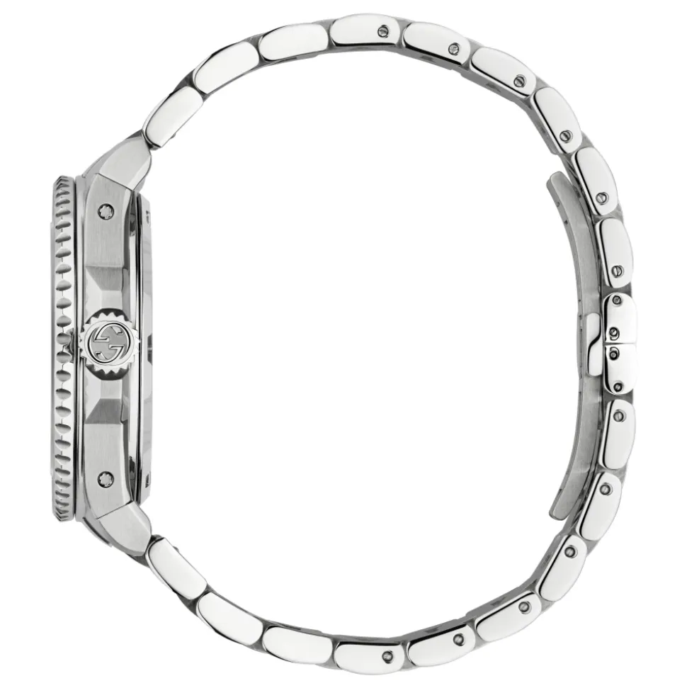 Forhøj din stil med dette Gucci dameur. Med automatisk bevægelse, sølvskive, rustfrit stålkasse, 40 mm diameter, 30 ATM vandtæthed, safirglas, rustfrit stålarmbånd og lås.