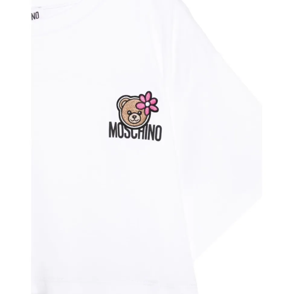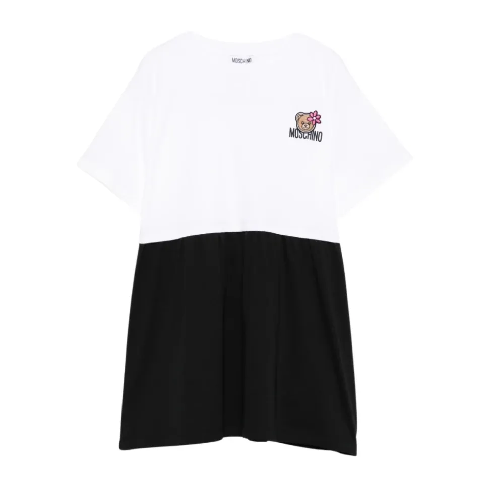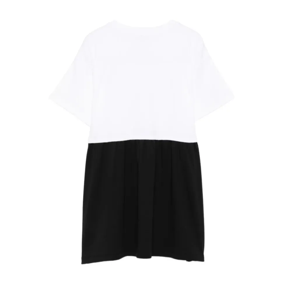 Moschino Abito girocollo mezza manica con stampa er en rundhalset kjole med korte ærmer og et trykt motiv, designet til nem hverdagsbrug og afslappede lejligheder. Nøgleattributter: Multicolor | Hvid | Rund halsudskæring | Korte ærmer | Trykt design