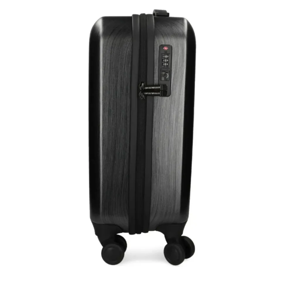 Emporio Armani ABS Carry-On Taske med Overdimensioneret Præget Ørn er en kompakt trolley med hårdt ydre, designet til kabine-rejser. Den kombinerer en slidstærk ABS-skal med et markant præget logo til hverdagsbrug i lufthavnen. Nøgleattributter: Gunmetal | Grå | ABS | Ridsefast skal | Teleskophåndtag | Fire 360° spinnerhjul | Lynlåslukning | Overdimensioneret præget ørnelogo | Rektangulær silhuet med afrundede kanter | Børstet mat finish | Mål & pasform: Højde: 56 cm | Bredde: 21 cm | Længde: 36 cm | One size | Carry-on / kabinestørrelse | Sammensætning & pleje: ABS