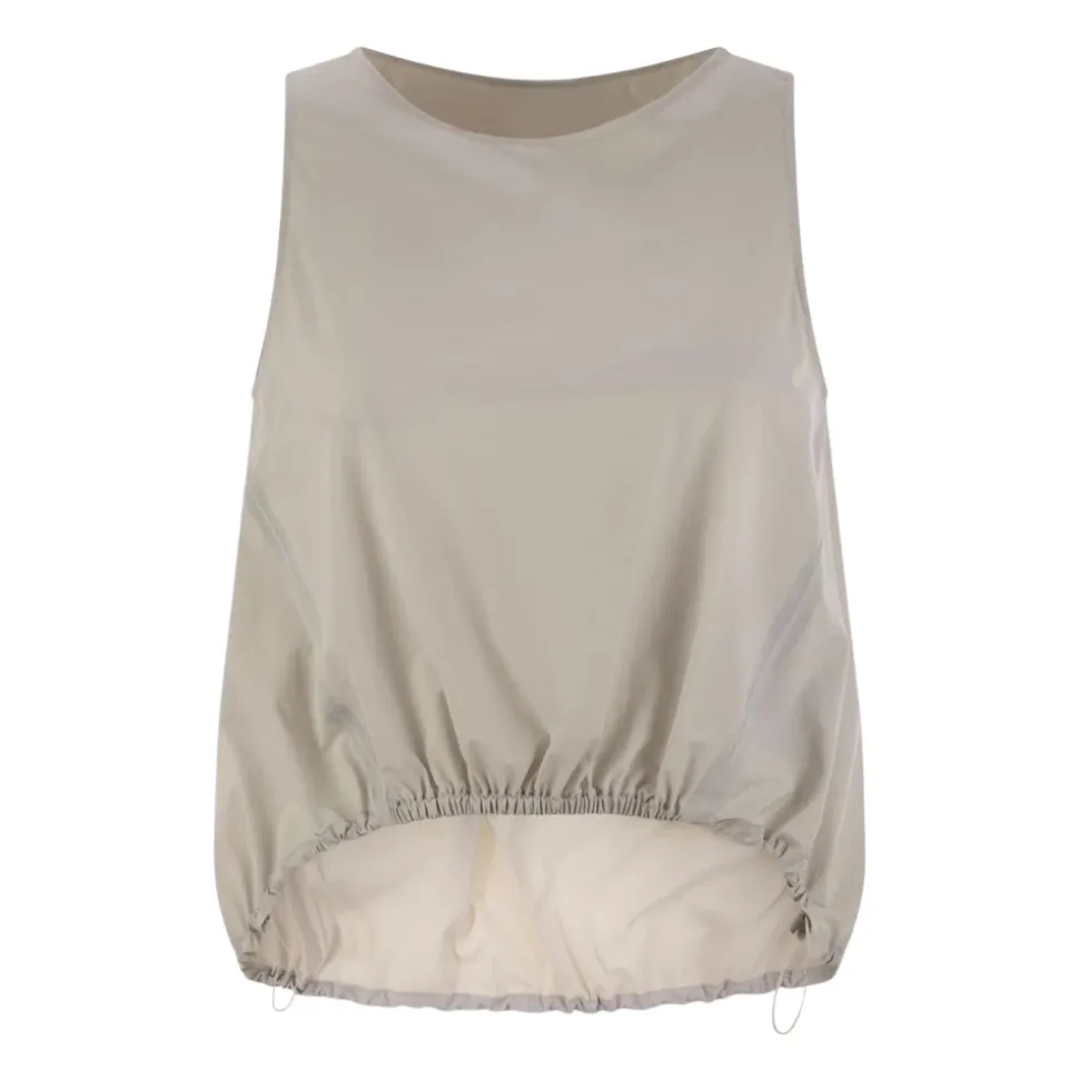 Herno Ærmeløs Top med Plisseret Ryg kombinerer brandets lette stretch-stof med en raffineret plisseret rygdetalje for en elegant, komfortabel top, der er velegnet til træning eller hverdagsbrug. Vigtige egenskaber: Beige | Ice | Polyamid | Stretch-stof | Letvægt | Silkeagtig fornemmelse | Justerbar snøre i kanten | Logo-mærke bagpå | Rund halsudskæring | Ærmeløs | Plisseret ryg | Asymmetrisk kant | Dimensioner & pasform: Regular fit | Sammensætning & pleje: 81% Polyamid | 13% Elastan | 6% Polyester