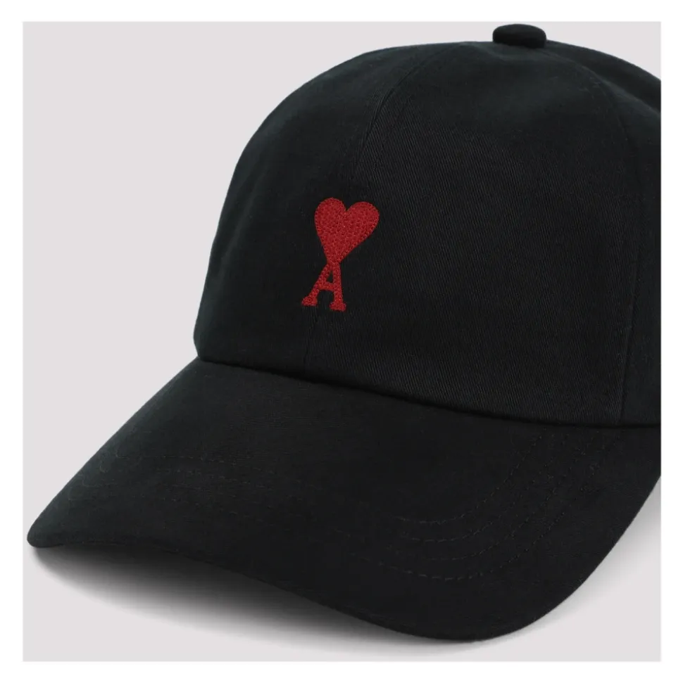 Ami Paris Ami De Coeur Embroidery Cap er en kasket i bomuldsgabardine med brandets signatur, det røde Ami de Coeur kædestingsbroderi. Den har en tekstureret ‘fersken’-effekt og en justerbar rem med et ‘Ami’-spænde for en tilpasset pasform. Vigtige egenskaber: Sort | Bomuldsgabardine | Justerbar rem med ‘Ami’-signaturspænde | Bomuldsfor | Rødt Ami de Coeur kædestingsbroderi | Tekstureret ‘fersken’-effekt | Buet skygge | Dimensioner og pasform: One size: 57 cm (justerbar bagpå) | One-size, justerbar bagpå | Sammensætning og pleje: 100% bomuld (gabardine) | For: 100% bomuld