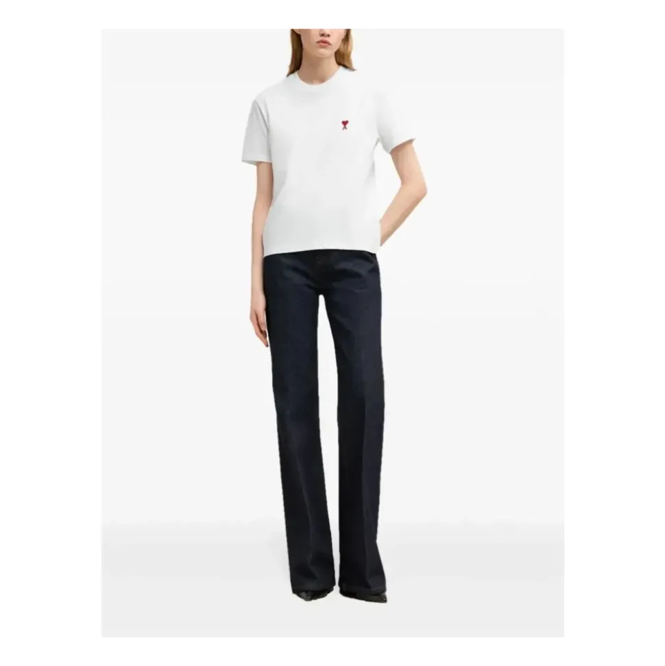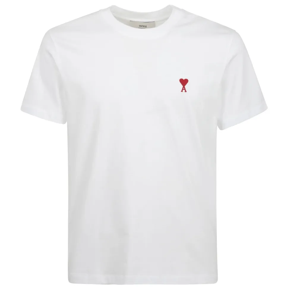 Ami Paris Ami De Coeur T-shirt er en klassisk bomulds T-shirt med rund hals, afsluttet med den karakteristiske røde ‘Ami de Coeur’ brodering på brystet, ideel til hverdagsbrug. Tonal ‘Ami’ brodering under den bagerste halsudskæring og en lige kant fuldender det rene, alsidige design. Nøgleattributter: Hvid | Bomuld | Rund hals | Korte ærmer | Lige kant | Rød broderet Ami de Coeur på brystet | Tonal ‘Ami’ brodering under bagerste halsudskæring | Dimensioner & pasform: Ryglængde: 66 cm (størrelse M) | Ryglængde: 58 cm (størrelse XS) | Klassisk pasform | Sammensætning & pleje: 100% bomuld | Maskinvask kold, skånsom cyklus. Må ikke bleges. Må ikke tørretumbles. Stryges ved lav varme. Må ikke renses.