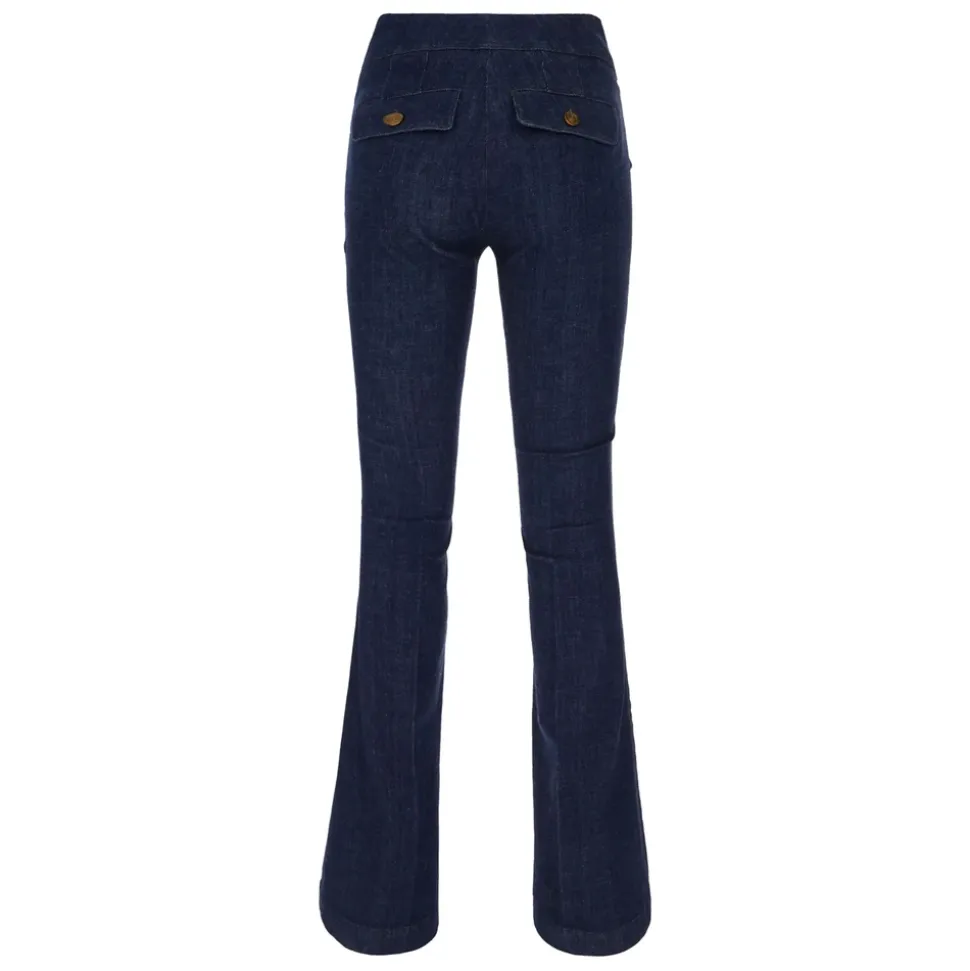Seafarer Anais Flared Jeans leverer en 70’er-inspireret flared silhuet med markante påsatte lommer, designet til et statement, men alligevel et brugbart denim-look. Jeansene kombinerer en høj talje og strækdenim for komfortabel hverdagsbrug. Nøgleattributter: Indigoblå | Bomuld | Strækdenim | Knaplukning | To frontklaplommer | To bagklaplommer | Udvidet ben | Høj talje | Lang længde | Dimensioner & pasform: Høj talje | Slim fit | Udvidet ben | Lang længde | Sammensætning & pleje: 98% Bomuld | 2% Elastan