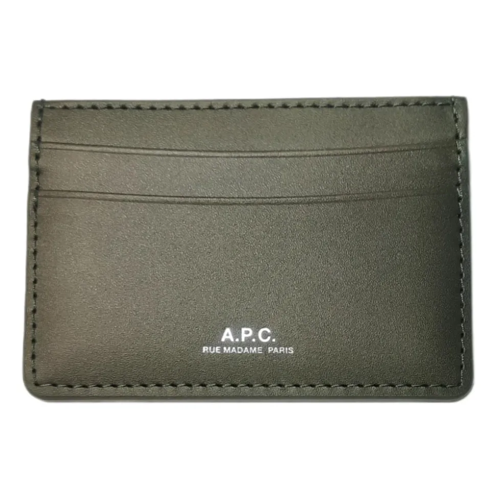A.P.C. André Cardholder er en kompakt kortholder i okselæder, designet til daglig organisering af kort. Den har en slank, flad silhuet med et præget ‘A.P.C. Rue Madame Paris’ logo. Vigtige egenskaber: Grøn | Kaki fonce | Okselæder | Flere kortlommer (to på den ene side, en på den anden) | Slankt kreditkortformat | Præget sølvfarvet ‘A.P.C. Rue Madame Paris’ logo | Flad, rektangulær silhuet | Ensfarvet finish | Dimensioner & pasform: 10 x 7 cm | Kortholder med kreditkortformat | Sammensætning & pleje: 100% okselæder