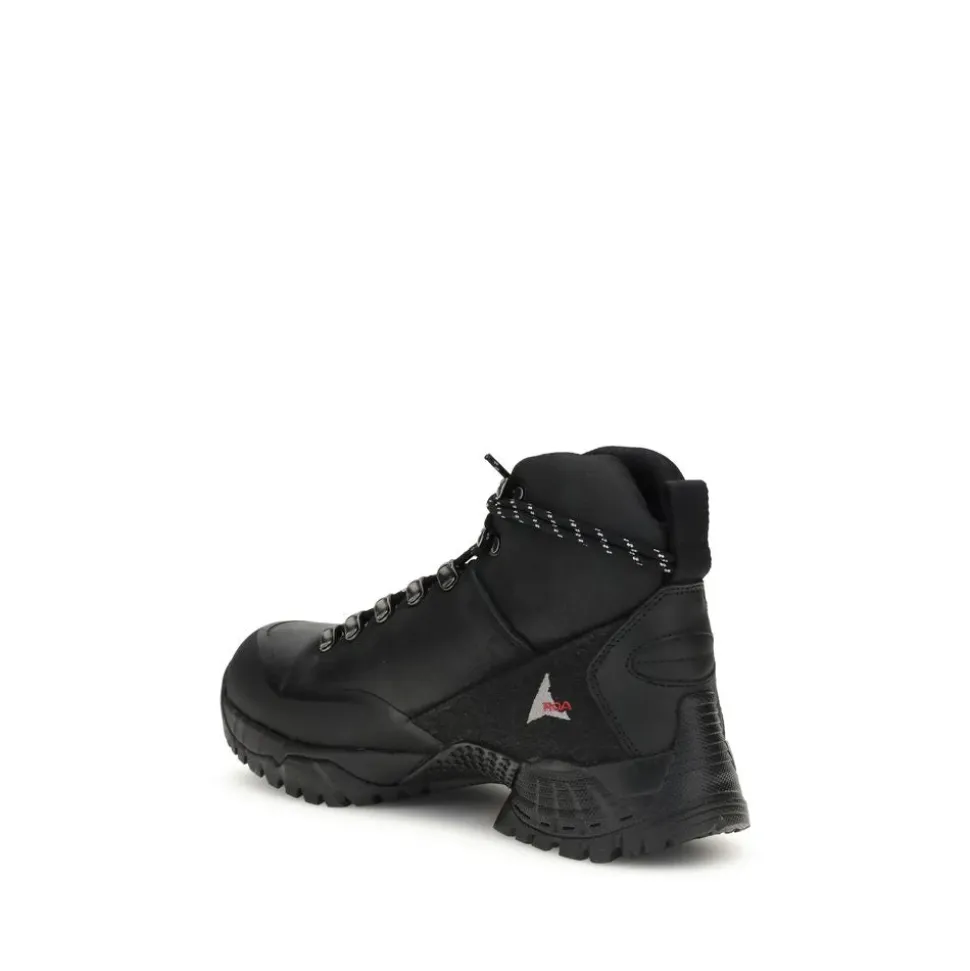 ROA Andreas Mountain Boots til mænd kombinerer robusthed og funktionalitet i et teknisk og sofistikeret design. Vibram® Megagrip sålen med takket Vybrid mønster giver optimalt greb på glatte og ujævne overflader. Den ubehandlede, vandafvisende kudu læderoverdel er kombineret med en polstret høj krave for ekstra støtte. Snøresystemet sikrer en stabil og sikker pasform. Sæson: AW25. Sammensætning: GENERAL 95% Læder 5% Gummi SÅL 70% Gummi 30% Andre fibre. LAVET I ITALIEN.