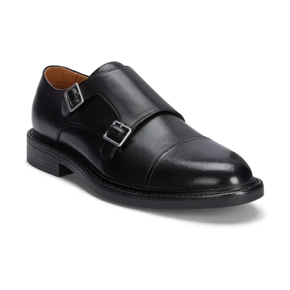 Polo Ralph Lauren Asher Dbl Mk-Dress Shoe-Monk Strap er en raffineret lædermunkesko med en dobbeltspændelukning, designet til formelle lejligheder og forretningsbrug. Vigtige egenskaber: Sort | Læder | Dobbelt spændelukning | Monk strap | Dobbeltspænde detalje | Klassisk silhuet | Dimensioner og pasform: Klassisk pasform | Sammensætning og pleje: Overdel: 100% kalvelæder | Sål: 100% gummi | Foring: 100% kalvelæder