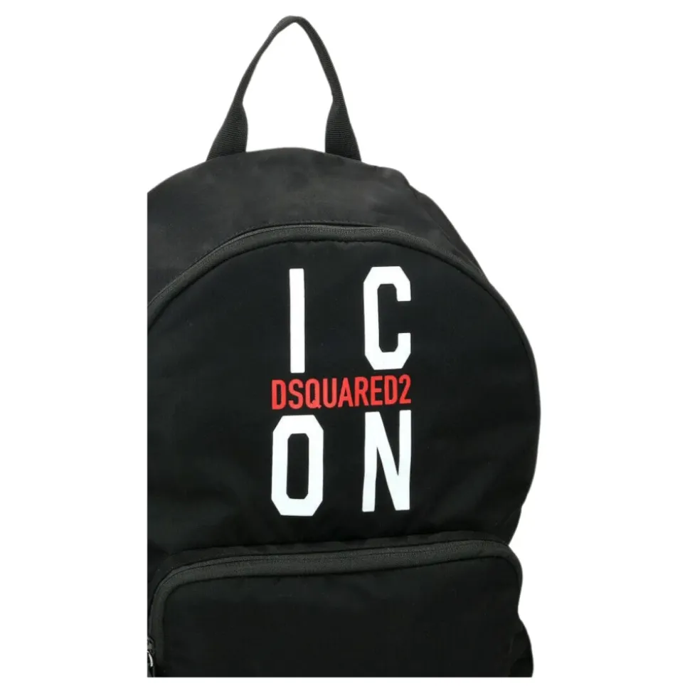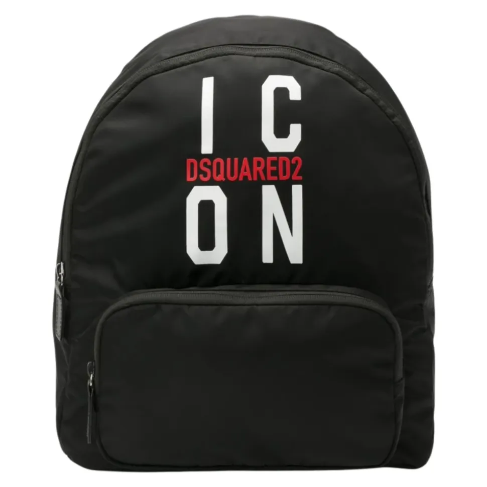 Dsquared2 Rygsæk i nylonkonstruktion med læderdetaljer, designet med en lynlåslukning og et markant kontrastfarvet rødt og hvidt logoprint til hverdagsbrug. Vigtige egenskaber: Sort | Nylon | Lynlåslukning | Ekstern lynlåslomme | Justerbare skulderstropper | Læderdetaljer | Kontrastfarvet rød | Hvidt logoprint | Lynlåslukningsdesign | Intern logoetiket | Sammensætning & pleje: 100% nylon | Læderdetaljer