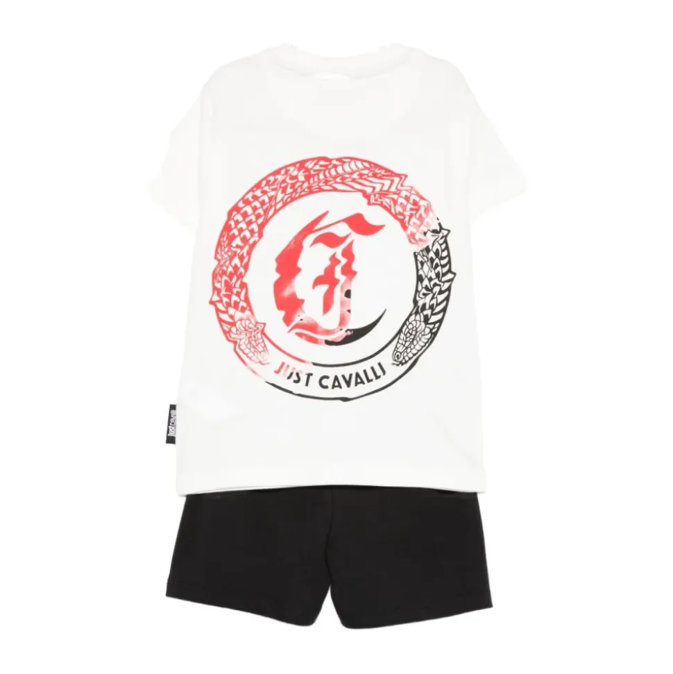 Just Cavalli Badham T-shirt og Bermuda Sæt leverer et koordineret, afslappet look designet til nem hverdagsbrug og lagdeling. Nøgleattributter: Flerfarvet | Hvid | Todelt sæt | Koordineret top og shorts | T-shirt og bermuda silhuet | Modelnavn Badham