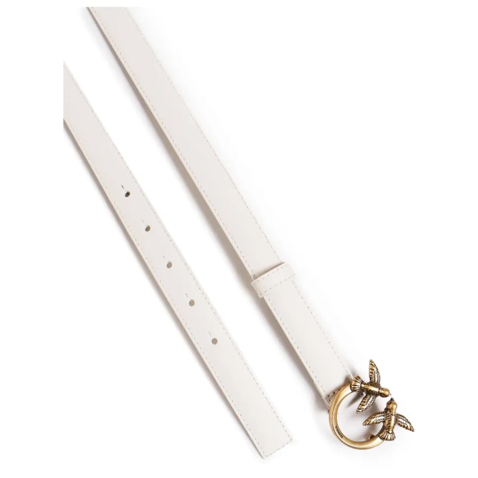 PINKO bælte med Love Birds-spænde. Et slankt læderbælte med et genkendeligt Love Birds metalspænde – designet til at tilføje et raffineret finish til både afslappede og formelle looks. Vigtige egenskaber: Hvid | Kalveskind | Justerbar lukning | Spændelukning | Læderstrop | Love Birds-spænde | Slank silhuet | Glat narvfinish | Mål og pasform: Bredde: 2 cm | Justerbar pasform | Sammensætning og pleje: Kalveskind 100% | Tilbehør: Zink | Må ikke vaskes. Må ikke bleges. Må ikke tørretumbles. Må ikke stryges. Må ikke renses.