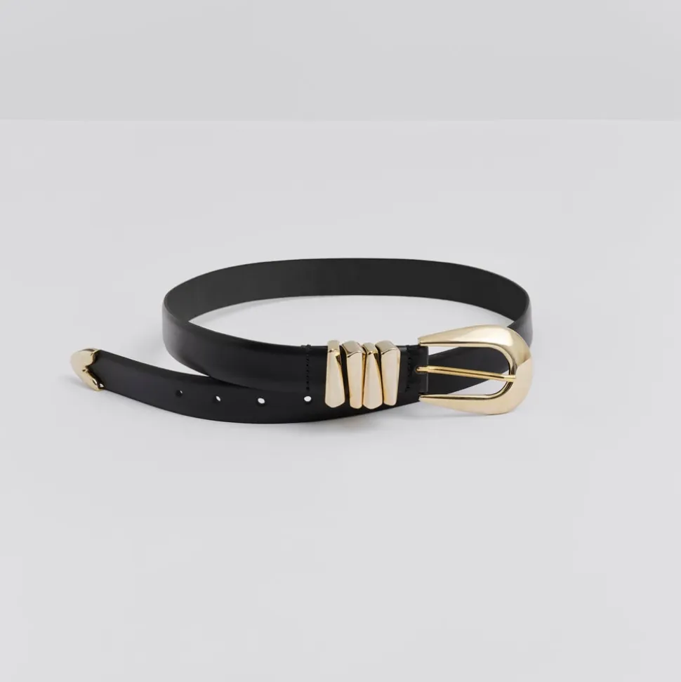Malina justerbart læderbælte med spænde. Fremstillet i Italien. Vigtigste egenskaber: Sort | Læder | Justerbar størrelse | Spænde lukning | Spænde detalje | Fremstillet i Italien | Mål & pasform: Justerbar pasform | Sammensætning & pleje: 100% Læder