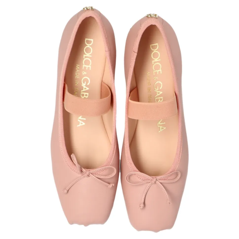 Dolce & Gabbana ballerinasko i læder med elastikrem opdaterer den klassiske balletflade med en rundet, let firkantet tå og en bred elastikrem over vristen for sikker og behagelig brug. Vigtige egenskaber: Pink | Læder | Behagelig brug | Bred elastikrem over vristen for stabilitet | Nemme at tage på og af | Rundet, let firkantet tå | Delikat sløjfe foran | Mat finish | Mål og pasform: Sålhøjde: 1 cm | Passer normalt i størrelsen | Sammensætning og pleje: Læder