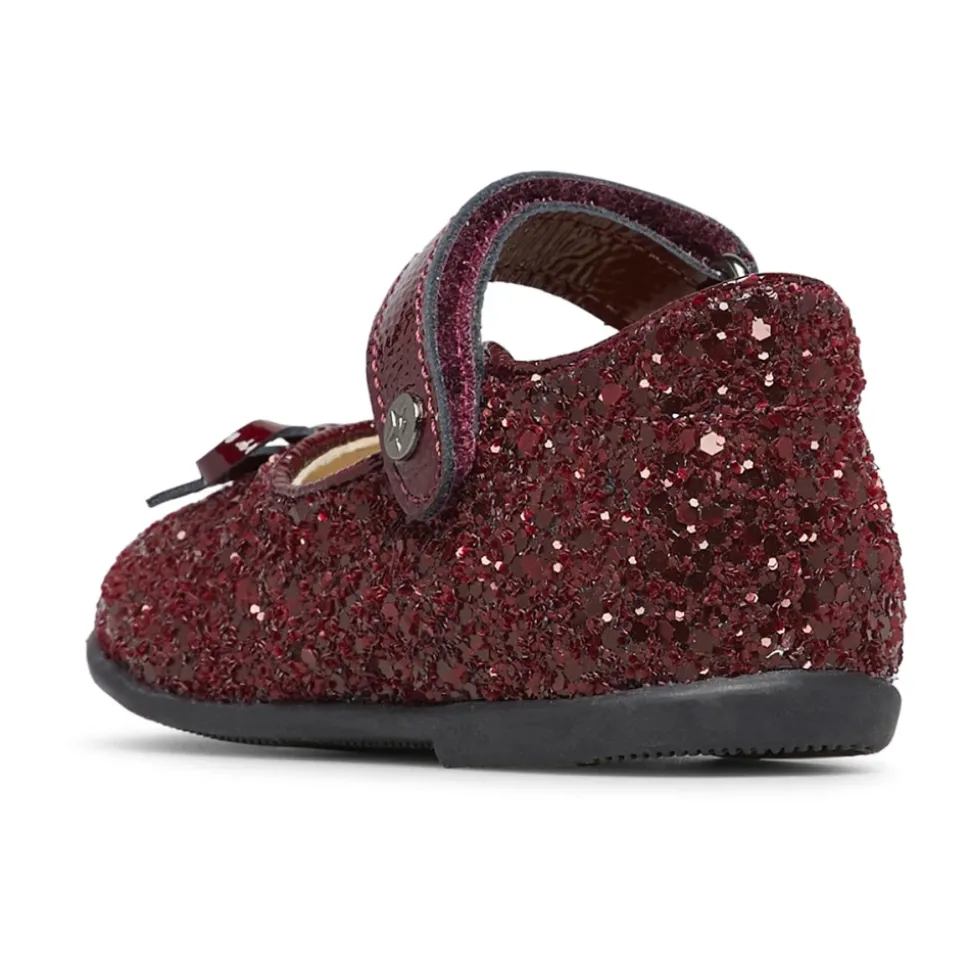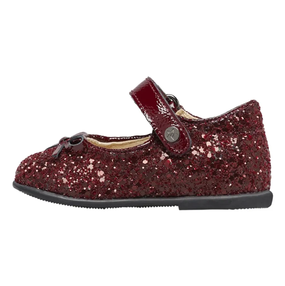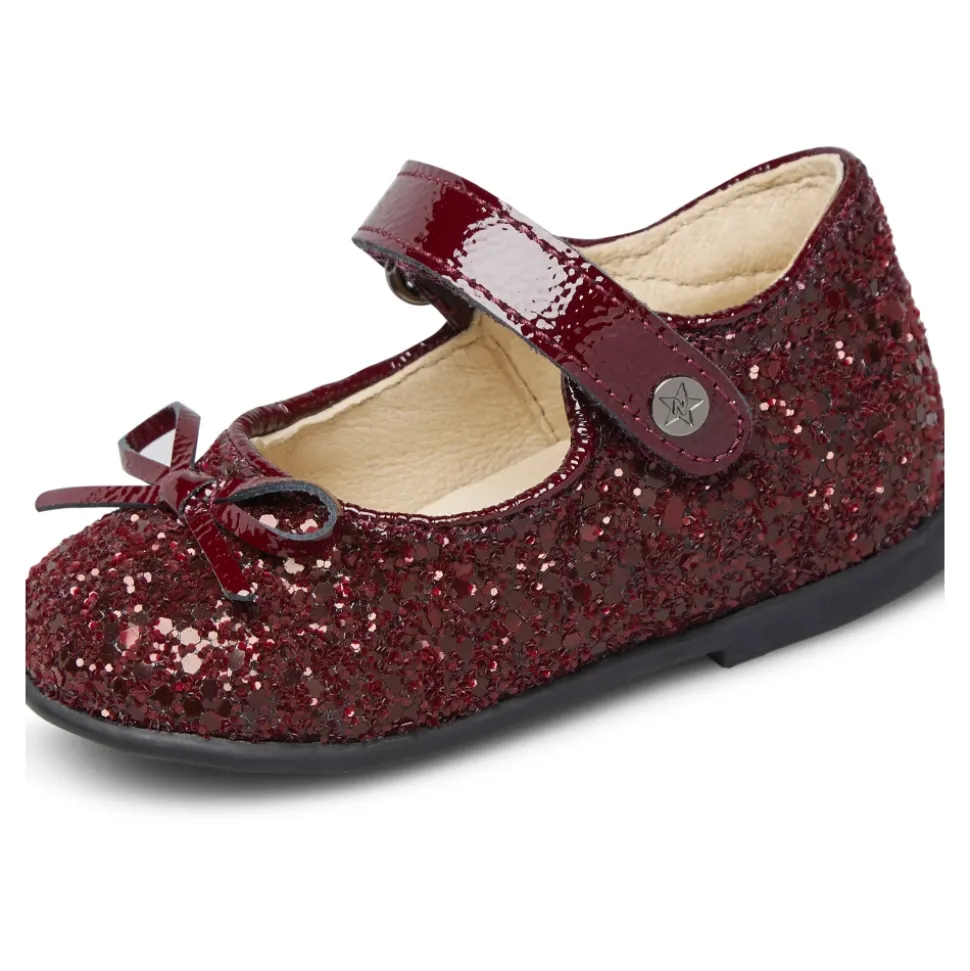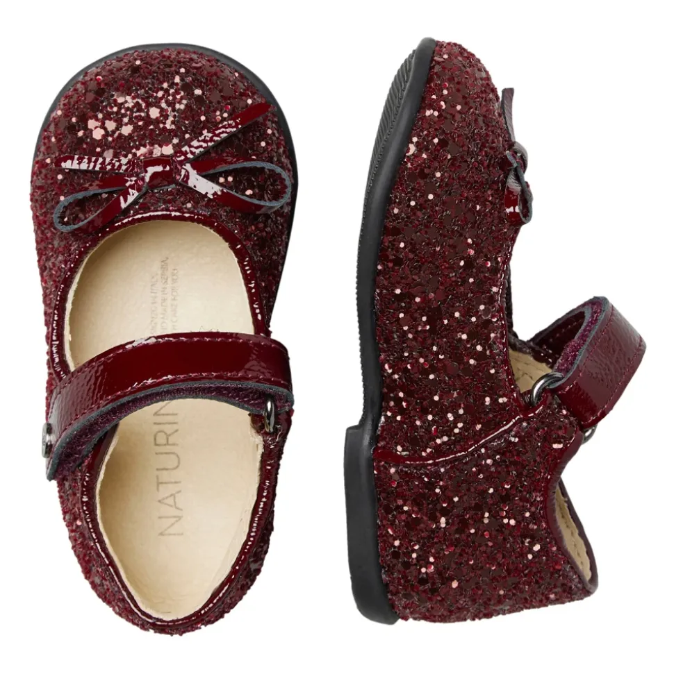 Naturino Ballet blander læder og glitterstof i en funklende ballerina sko med en justerbar rem og skridsikker gummisål, designet til selvsikker hverdagsbevægelse og særlige lejligheder. Vigtigste egenskaber: Brun | Bordeaux | Læder og glitterstof | Skridsikker gummisål | Justerbar rem | Velcrolukning | Sløjfe detalje på overlæder | Glitter overdel | Sammensætning og pleje: Læder (for og indersål) | Glitterstof (overdel) | Gummi (ydersål)