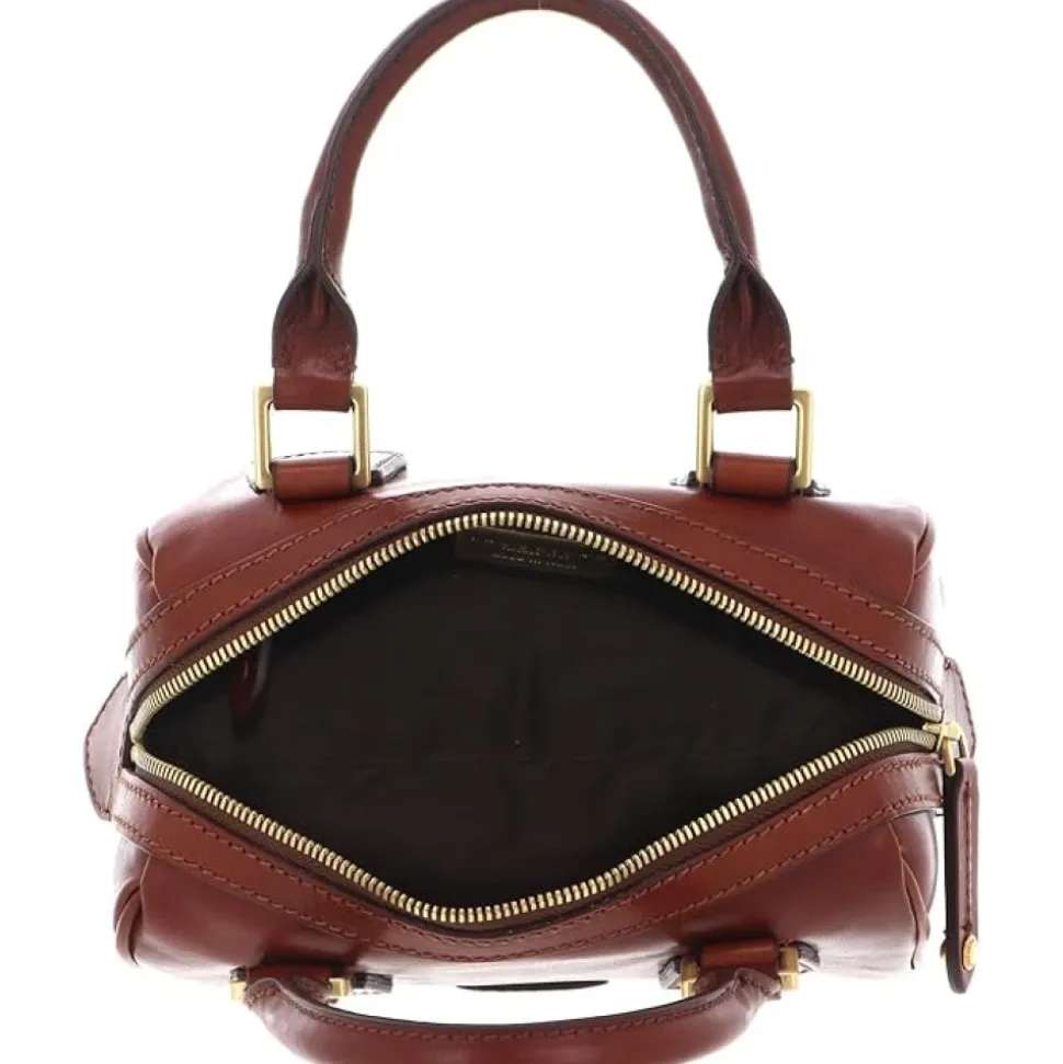 The Bridge Bauletto Piccolo er en kompakt læder bauletto designet til hverdagsbrug, der kombinerer en ren, struktureret silhuet med praktisk organisering. Nøgleattributter: Brun | Læderbrun | Læder | Lynlåslukning | Aftagelig skulderrem | Top håndtag | Indvendige lommer til organisering | Bauletto form | Struktureret silhuet | Minimalistisk design | Mål og pasform: 15 x 22 x 12 cm | 474 g | Sammensætning og pleje: Læder | Tekstilfor | Aftør med en blød, tør klud. Behandl med læderplejeprodukter efter behov og undgå langvarig udsættelse for vand.