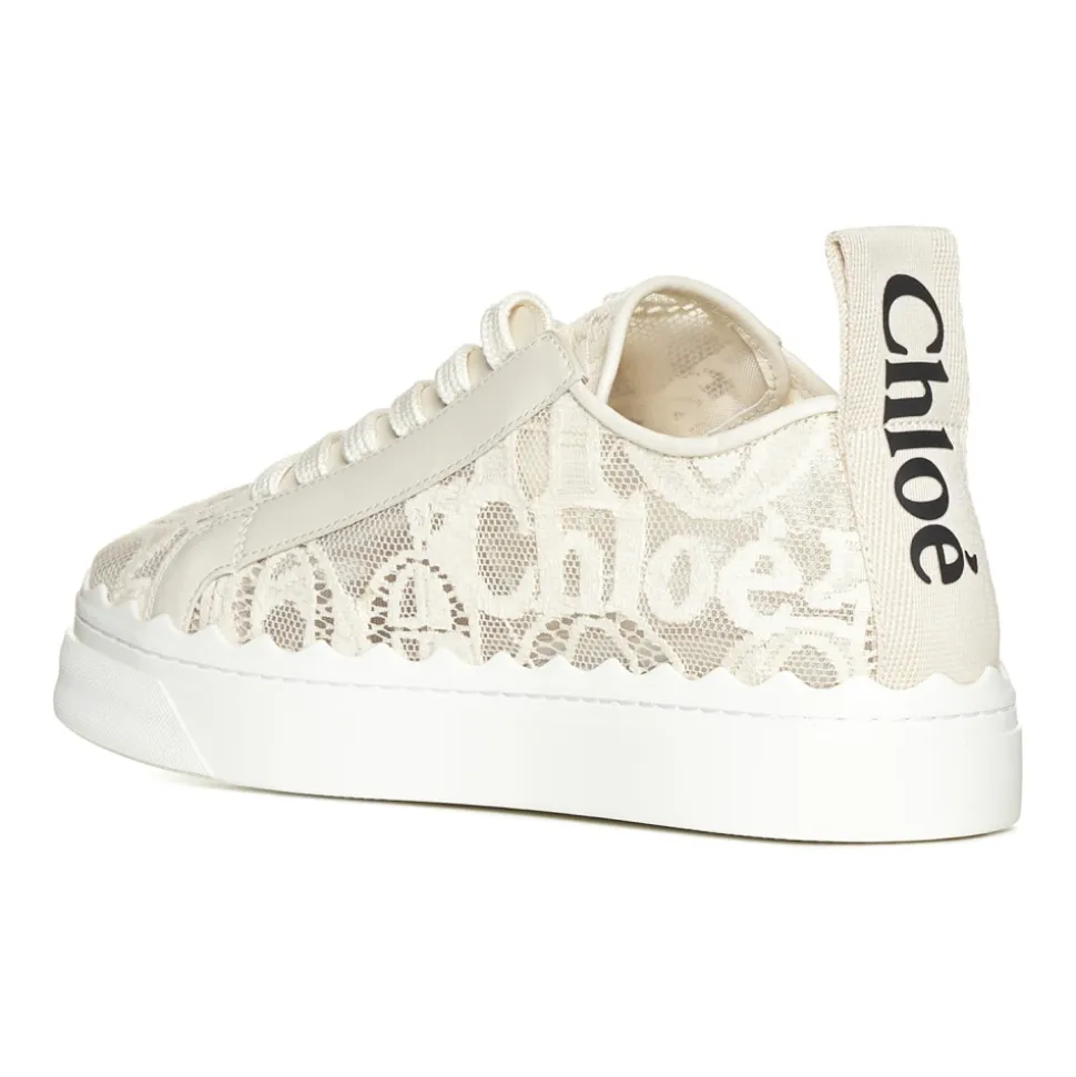 Opgrader dit sneaker-spil med Chloés Lauren sneakers i beige blonder-logo. Disse kvindelige sneakers har en afrundet tå, frontsnørebånd, tone-i-tone læderdetaljer, stofhælløkkefane med sort logo og hvid gummisål med bølget blondestil. Lavet af 100% læder.