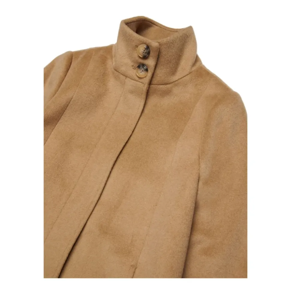 Hold dig varm og stilfuld på kolde dage med denne Max & Co. Giacconi frakke i beige. Lavet af en blød uld-polyester blanding, tilbyder den både komfort og en moderne silhuet, perfekt til lag-på-lag.