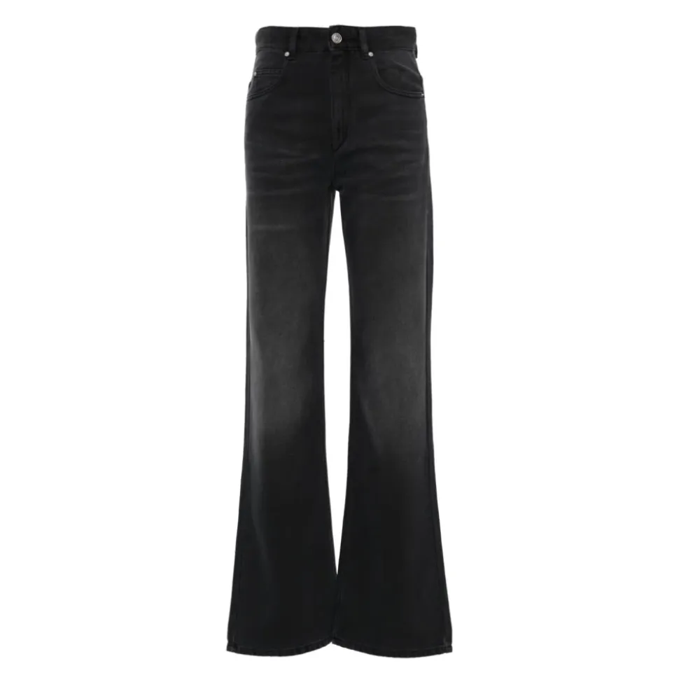 Opgrader din stil med Isabel Marant Belvira Flared Jeans i sort vasket denim. Disse jeans tilbyder en klassisk silhuet med et moderne twist, perfekt til enhver moderne garderobe. Produkt detaljer: Fadedblack | Black | Denim | Flared design | Medium-rise waist | Silver-finish metal details | Dimensioner og pasform: True to size | Regular fit |