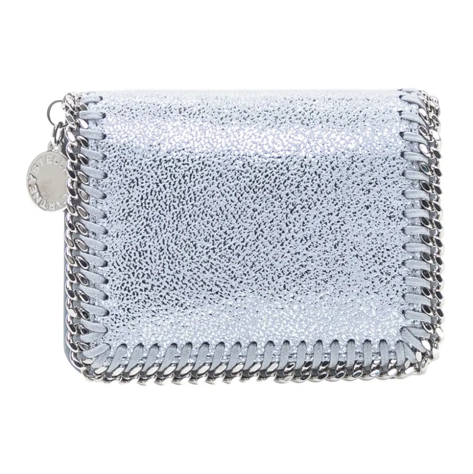 Stella McCartney Bi-Fold Wallet Falabella er en kompakt lamineret pung, der kombinerer en skinnende finish med signatur metal kædedetaljer for et poleret hverdags-accessory. Designet til organiseret opbevaring, den har plads til sedler, mønter og flere kort i en lille, struktureret form. Nøgleattributter: Sølv | Polyester | Organiseret indvendige lommer | Plads til pengesedler og mønter | Kan indeholde op til otte kort | Lamineret skinnende finish | Metalkæde detaljer langs kanterne | Bi-fold silhuet | Dimensioner og pasform: Bredde: 11,5 cm | Højde: 9 cm | Dybde: 2,5 cm | | Sammensætning og pleje: 100% Polyester | Se producentens anvisninger.