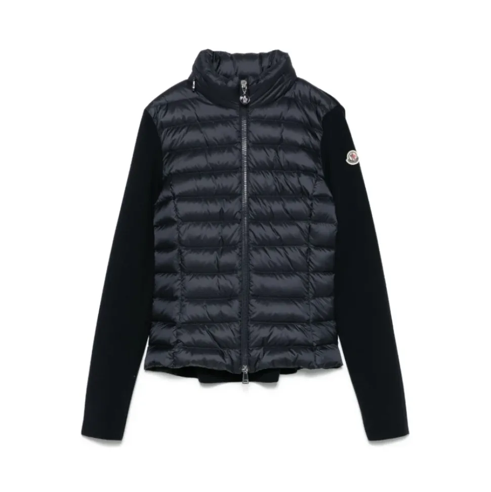 Moncler Bi-Material Dunjakke kombinerer en strikket merinouldkrop med en dunforet front for let varme og en raffineret silhuet til midtsæsonen. Den er designet til nem lagdeling med praktiske funktioner som en skjult hætte og lynlåslommer. Nøgleattributter: Blå | Uld og polyamid | Dunisolering | Let varme | Tovejs lynlåslukning | Skjult hætte | Lynlåslommer i siden | Høj krave | Ribkanter | Panelkonstruktion i to materialer | Logo-patch på ærmet | Dimensioner og pasform: Slank pasform | Sammensætning og pleje: Jomfruuld 95%, polyester 5% (basismateriale) | Polyamid 100% (frontforing/ydre) | Gåsedun 90%, fjer 10% (fyld)