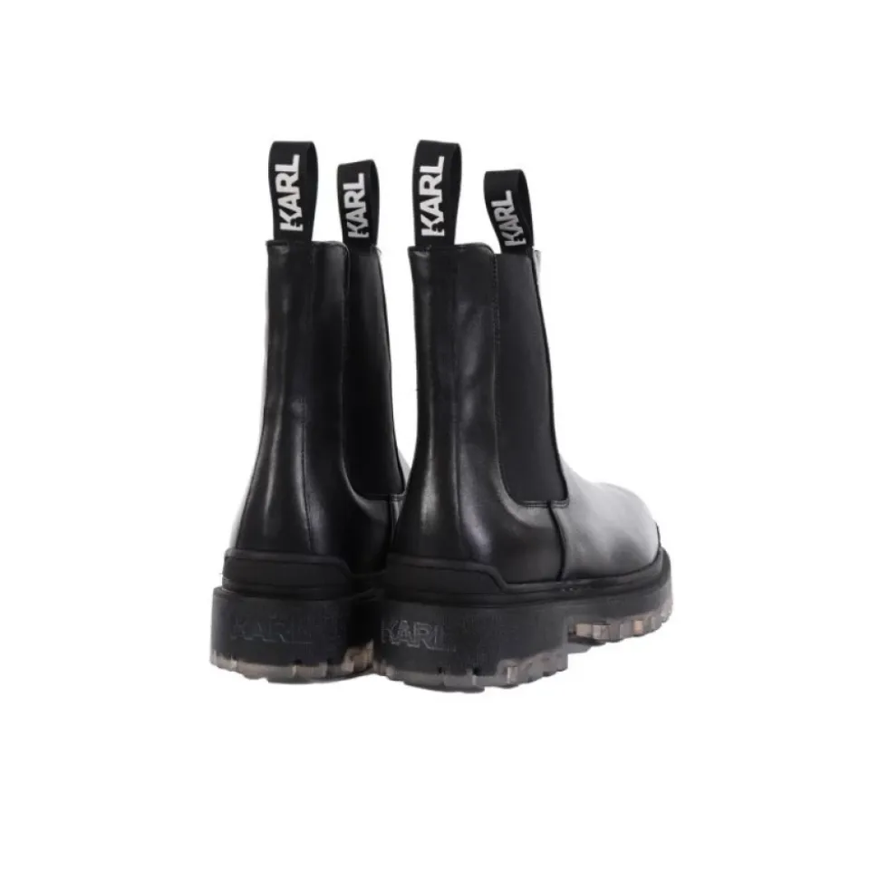 Karl Lagerfeld Biker II Mid Gore Boot – en Chelsea-støvle i læder med elastiske sidepaneler og en kraftig sål, designet til hverdagsbrug i byen og nem at tage af og på. Vigtigste egenskaber: Sort | Læder | Kraftig sål for forbedret trækkraft | Elastiske sidepaneler | Slip-on / pull-on design | Trækfane for nem påtagning | Chelsea-støvlesilhuet | Rund snude | Gummi kile detalje på overdelen | Sammensætning & pleje: Læder