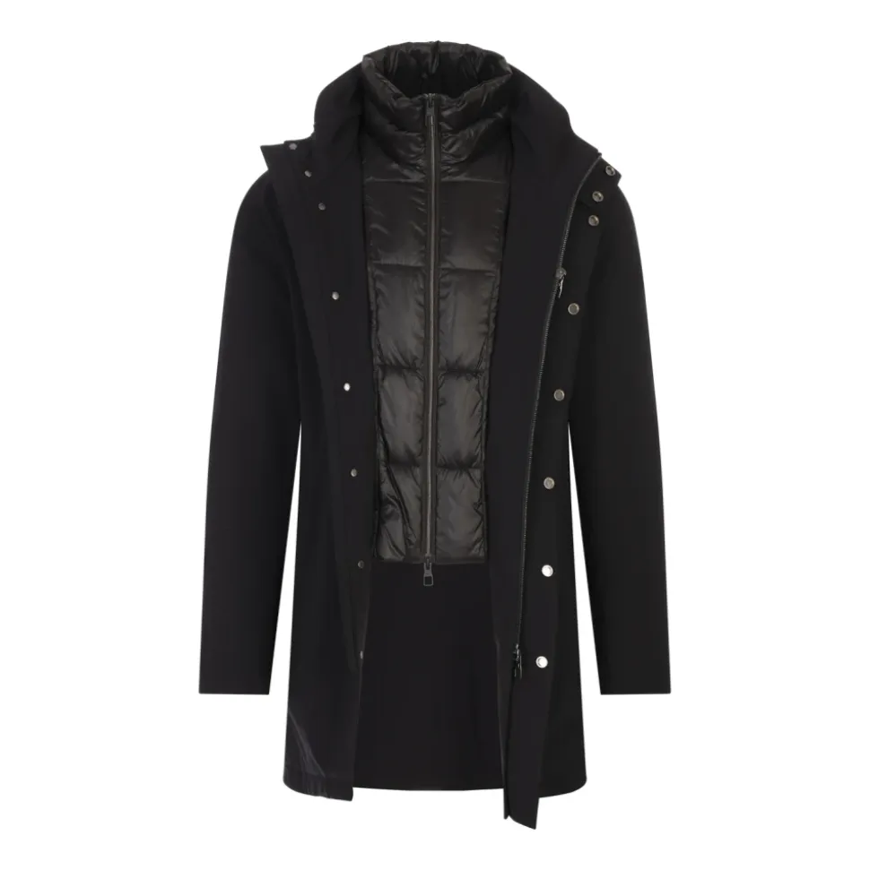 Hold dig varm og stilfuld med denne Montecore enkeltknapfrakke til mænd. Lavet af 91% polyester og 9% elastan med let dunpolstring.
