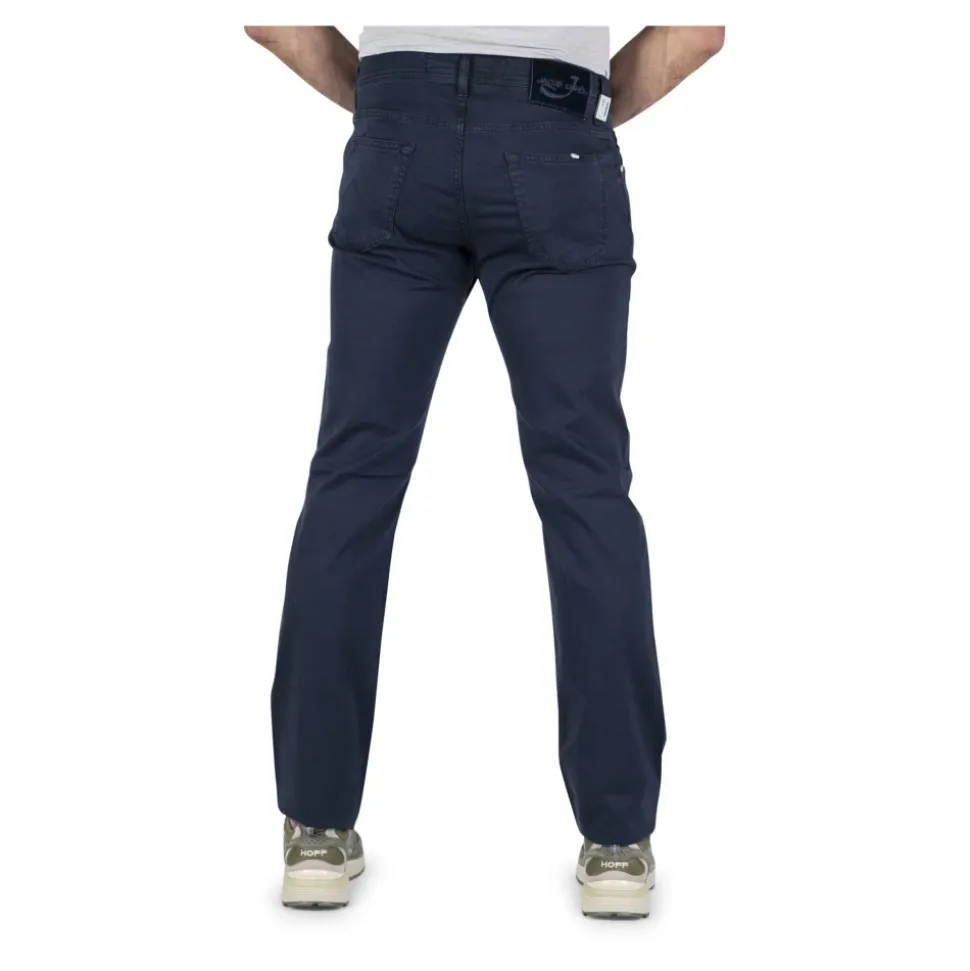 Opdag disse stilfulde Jacob Cohën slim-fit bukser til mænd i blå. Produceret i Italien, disse sommerbukser har en 5-lomme design med lapper baglommer, bæltestropper og knaplukning. Lavet af en strækbar stofblanding af 55% bomuld, 42% lyocell og 3% elastan for en behagelig pasform. Klik her for flere herrebukser.