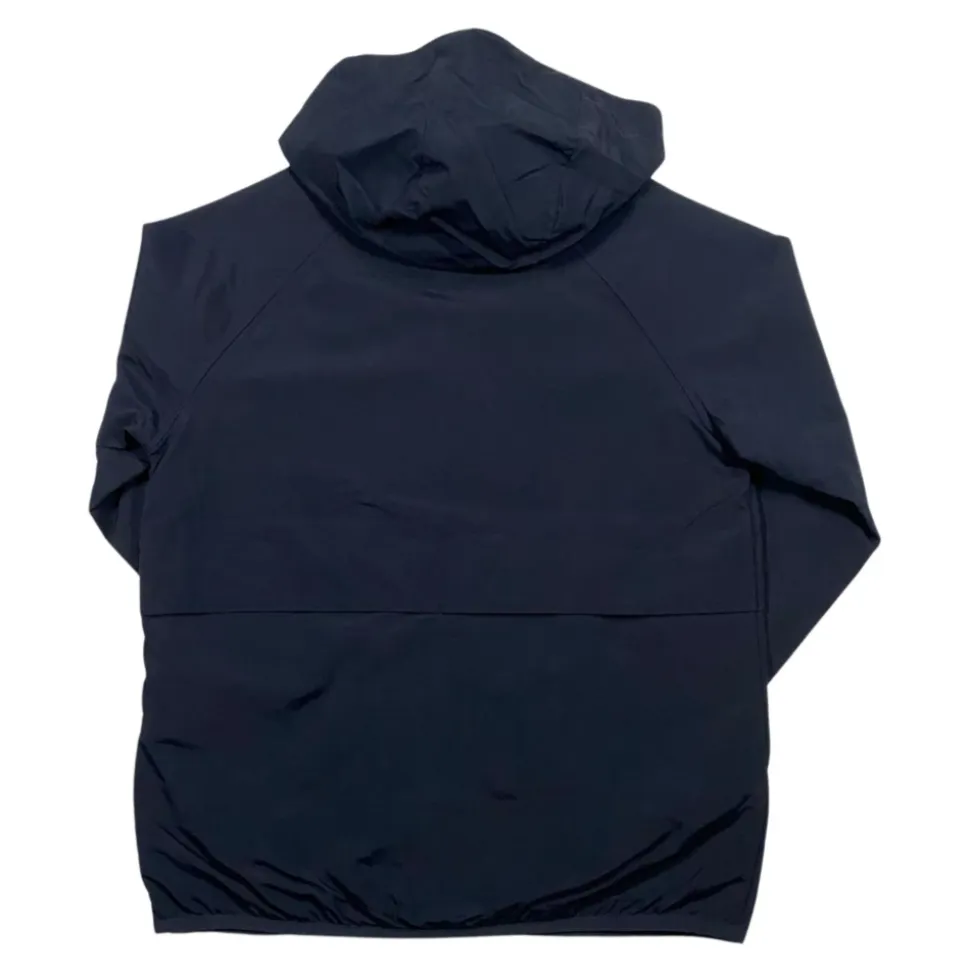Lyle & Scott Kids blå jakke med fast hætte, vindtæt, lynlåslukning, sidelommer med lynlås, broderet kontrastlogo på brystet, lige kant, almindelig pasform. Sammensætning: 100% nylon.
