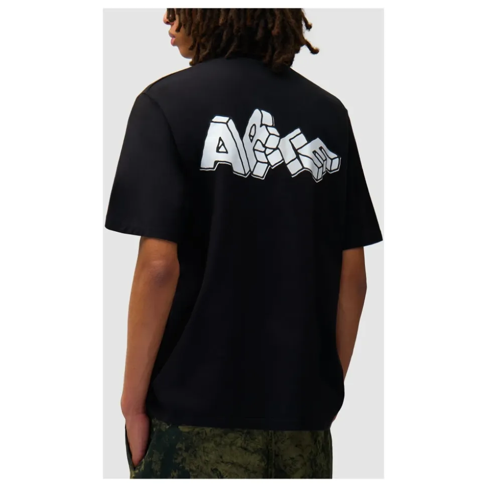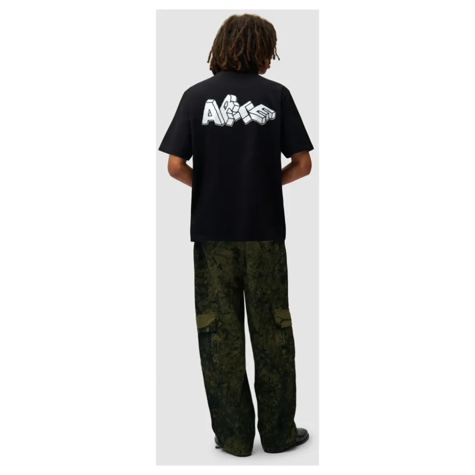 Arte Antwerp Blocks Print T-Shirt er en afslappet, kraftig bomulds T-shirt fra AW25-kollektionen, med en markant screenprintet grafik på ryggen for et moderne og afslappet look. Nøgleattributter: Sort | Bomuld | Kraftig bomuld | Ribstrikket crew neck med indvendig tape | Rund halsudskæring | Korte ærmer | Screenprintet grafik på ryggen | Lidt højere krave | Dimensioner & pasform: Afslappet pasform | Sammensætning & pleje: 100% bomuld | Maskinvask kold, må ikke bleges, må ikke tørretumbles.