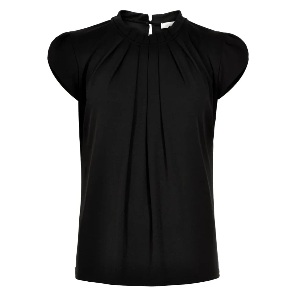 Forkæl dig selv med denne smukke IN FRONT bluse. Den har en rund halsudskæring med fine flæsedetaljer, knaplukning bagpå og en dråbeformet udskæring. Brug den sammen med en mønstret nederdel for et elegant look. Løs pasform. Målinger for størrelse S: Bryst: 44 x 2 cm, Længde: 61 cm. Model: Bluse 13028 Sort. Lavet af 95% polyester og 5% elastan. Vaskes ved 30 grader.