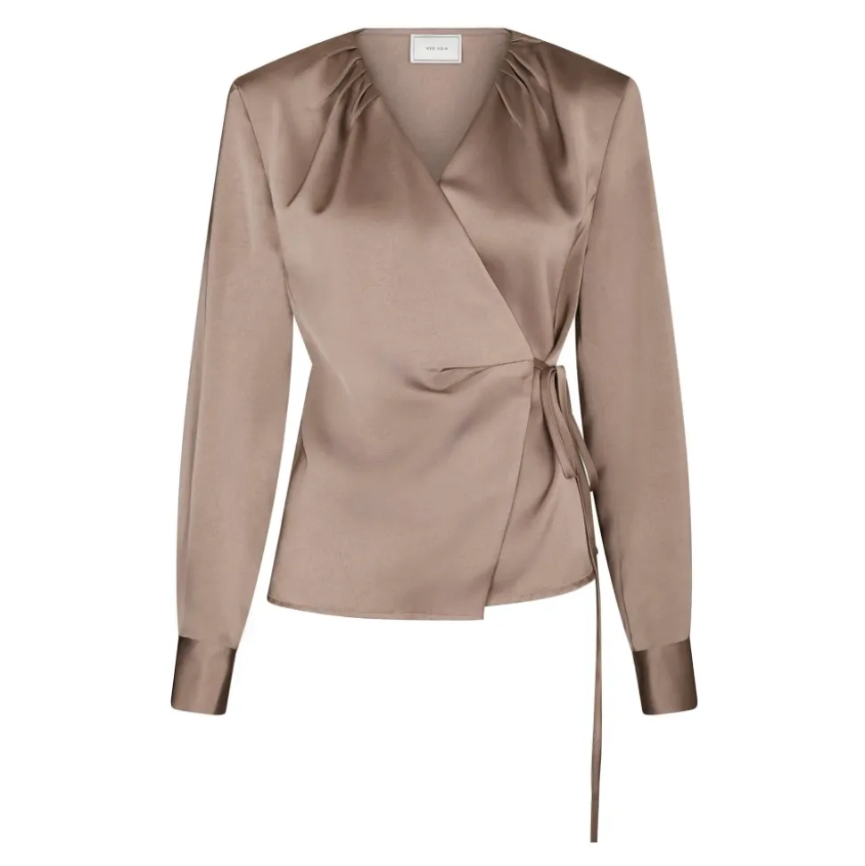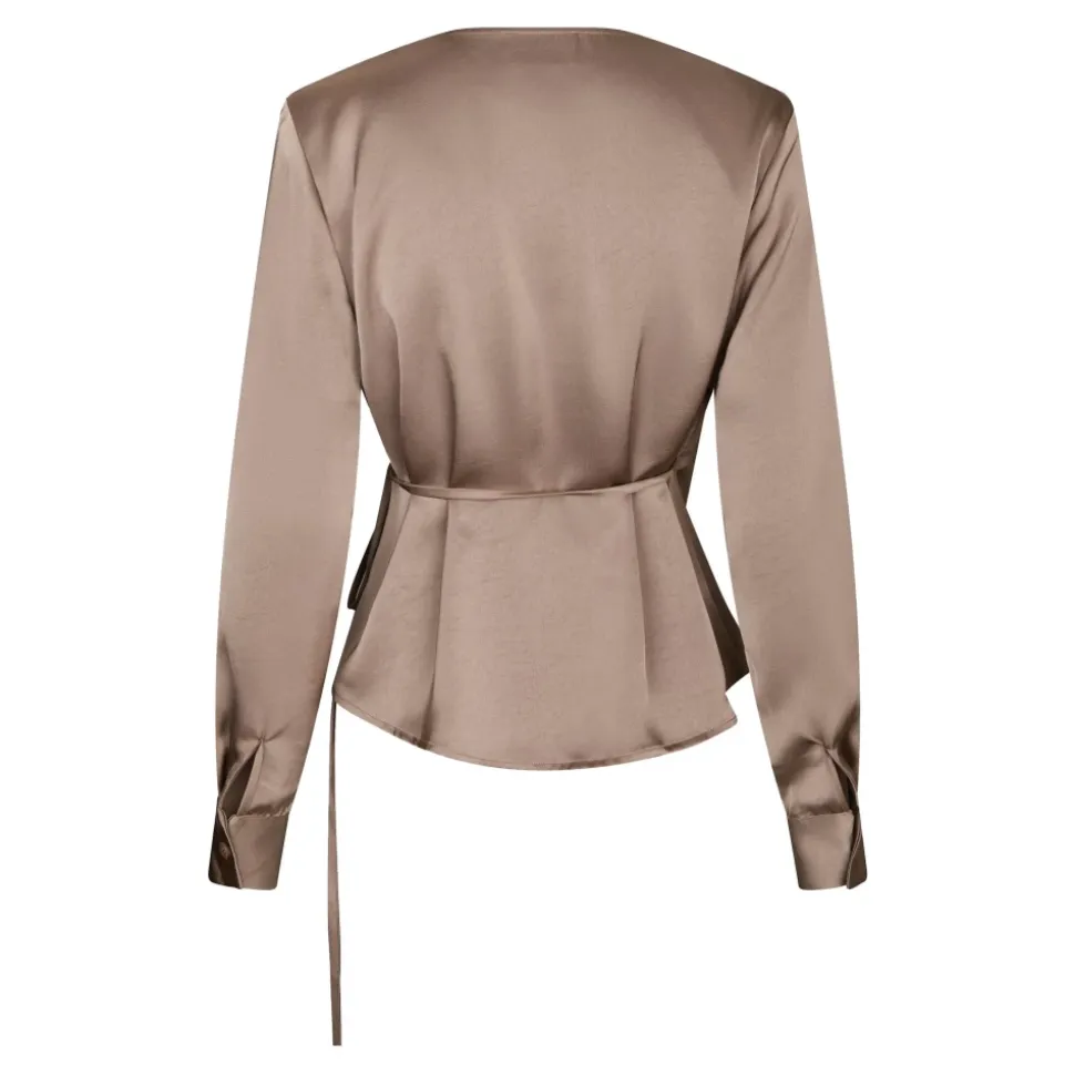Neo Noir bluse med en alsidig silhuet, designet til nem lagdeling og hverdagsbrug. Nøgleattributter: Beige | Mørk taupe