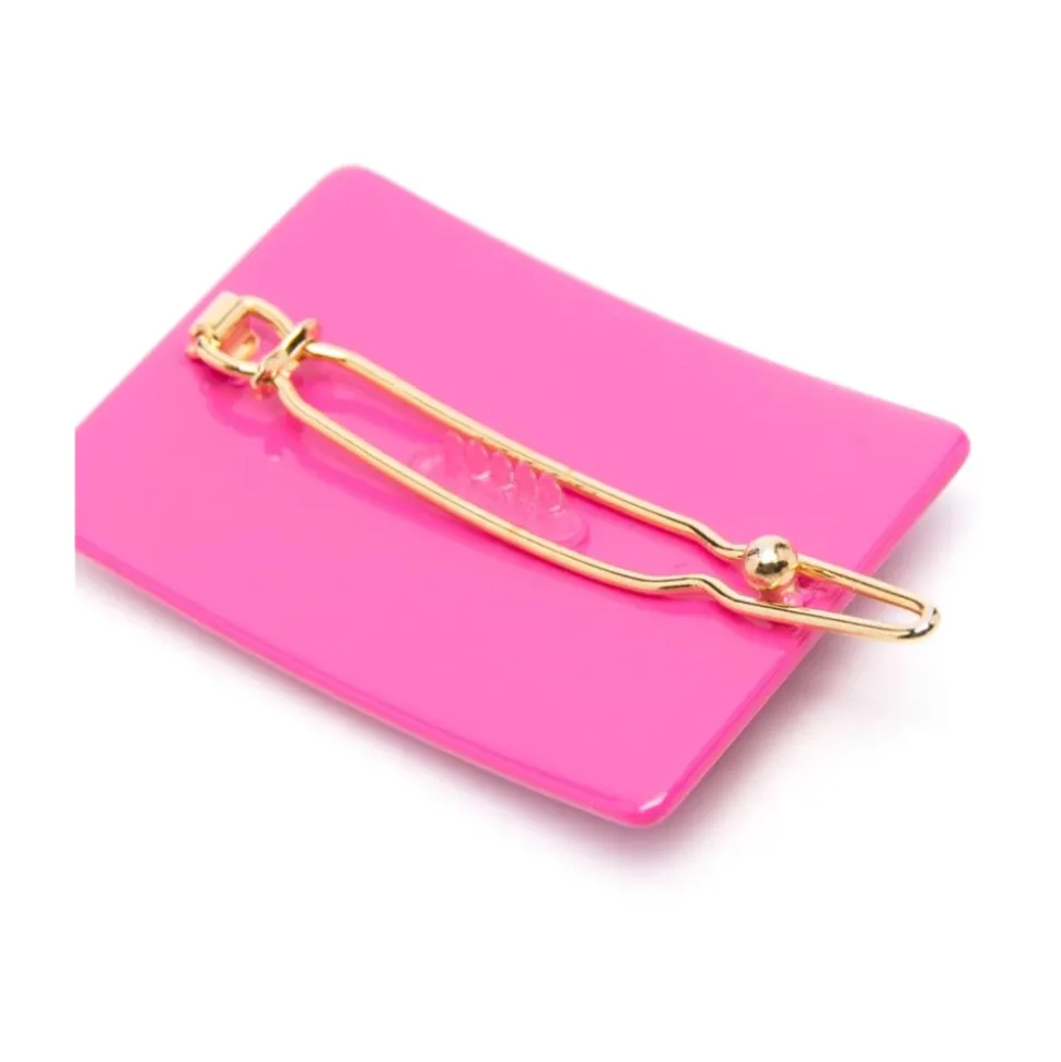 Tilføj et pop af farve til din lille piges outfit med denne Fendi fuchsia pink rektangulære hårspænde. Designet med en bagklips lukning for nem styling.