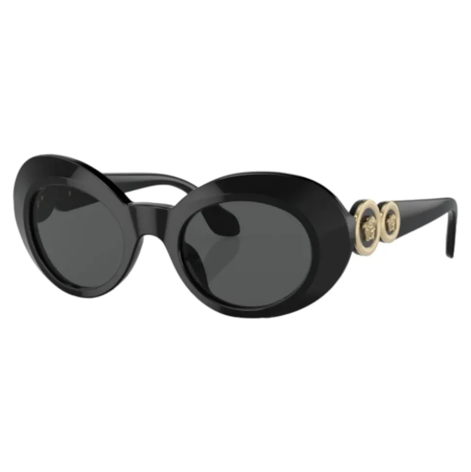 Forkæl dit barn med disse Versace Kids VK4428U- GB1/87 solbriller. Med en elegant oval form i blank sort plastik er disse solbriller et must-have tilbehør. Størrelse: 45mm linse, 20mm bro, 130mm stænger.
