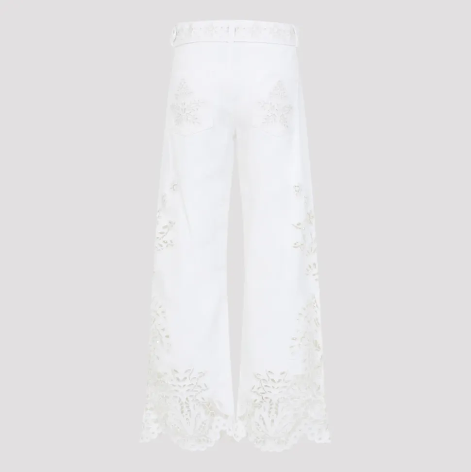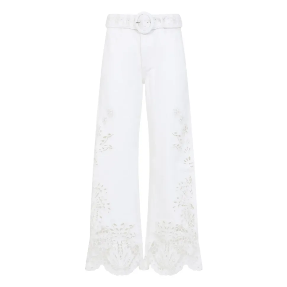 FARM Rio Boho Beauty Richelieu Pants er off-white, mid-waist bukser med brede ben, fremhævet med Richelieu-bælte og broderede detaljer langs benene. De giver en nem og afslappet silhuet med praktiske lommer og bæltestropper. Nøgleattributter: Hvid | Off-white | Bomuld | Letvægt | Bæltestropper | Richelieu-bælte | Forlommer | To påsatte baglommer | Midt i taljen | Richelieu-detaljer langs benene | Brede ben | Dimensioner og pasform: Midt i taljen | Afslappet pasform | Brede ben | Sammensætning og pleje: Bomuld