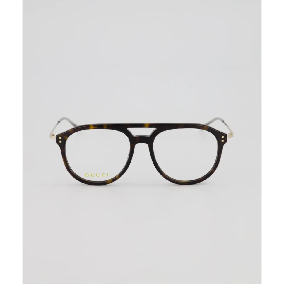 Gucci Bold Pilot Optiske Briller kombinerer en front af acetat med stænger af stål for en let aviator-ramme, der føles kølig. Designet til hverdagsbrug med styrke, de har en dobbelt bro caravan form og subtilt bogstavlogo. Nøgleattributter: Sort | Acetat | Letvægtskonstruktion | Kølige stænger af stål | Egnet til recept (RX-able) | Fuld-ramme | Dobbelt bro | Afrundet caravan (aviator) form | Bogstavlogo | Dimensioner & pasform: Linsebredde: 53 mm | Bro: 17 mm | Stanglængde: 140 mm | Linsehøjde: 46 mm | Medium ramme | Sammensætning & pleje: Acetat | Stål