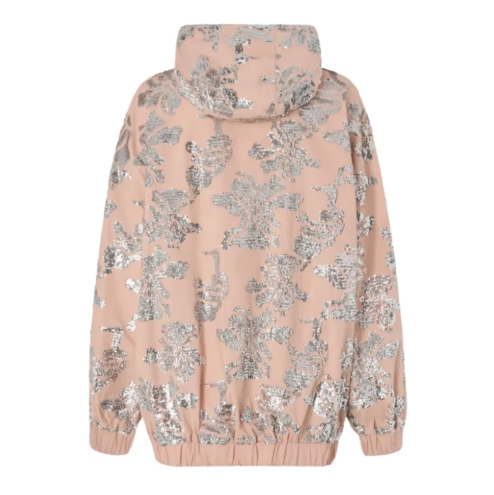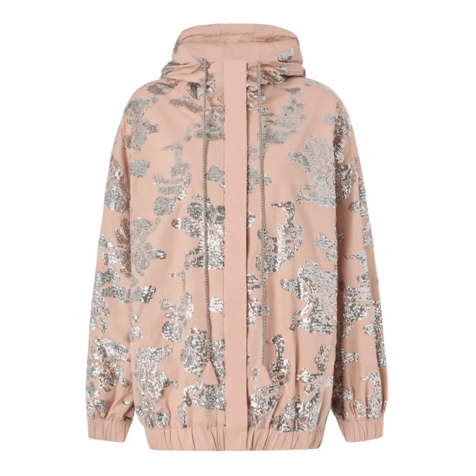PINKO Bomberjakke med blomsterpailletterbroderi kombinerer teknisk poplinkonstruktion med all-over sølvpailletter og blomsterdetaljer for et praktisk, men iøjnefaldende yderlag. Vigtigste egenskaber: Pink | Nudo sølv | Bomuld | Holdbar teknisk poplin | Komfortabel konstruktion | Elastisk kant og manchetter | Skjult lynlåslukning | Hætte med justerbar snøre med perlespidser | All-over sølvpailletter blomsterbroderi | Bomber silhuet | Hættedesign | Sammensætning og pleje: Ydre: 100% Bomuld | Foring: 100% Polyester | Tilbehør: 90% Polyester, 10% Messing