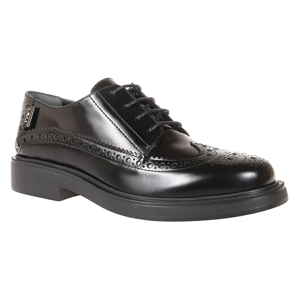 Tod’s damesnederdel i burgunder læder med engelsk-stil brogue-detaljer og gummisål. Findes i EU-størrelser. Leveres med logotaske.