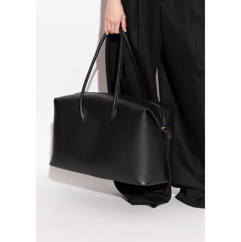Yuzefi Brioche Travel Bag kombinerer minimalistisk design med rejse-klar funktionalitet. Dens geometriske, rektangulære silhuet og teksturerede fuldnarvlæder gør den til en alsidig taske til korte ture og hverdagsbrug. Nøgleattributter: Sort | Læder | Holdbar konstruktion | Struktureret form bevarer formen | Lange dobbelte håndtag til hånd- eller skulderbæring | Sikker top lynlåslukning | Syede håndtag for holdbarhed | Rummeligt interiør | Geometrisk rektangulær silhuet | Subtile afrundede kanter | Præget Yuzefi-logo | Guldfarvet hardware | Tekstureret pebble-grain finish | Minimalistisk design | Dimensioner og pasform: Højde: 32 cm | Bredde: 55 cm | One size | Bæremuligheder: hånd eller skulder | Sammensætning og pleje: Ydre: 100% okselæder | Foring: 50% polyamid, 50% polyurethan | Opbevares på et køligt, tørt sted og opbevares i en støvpose, når den ikke er i brug. Undgå kontakt med vand, olier og parfumer. Hvis læderet bliver vådt, duppes det forsigtigt med en blød klud og lufttørres. Rengør med læderspecifikke produkter efter behov og undgå slibende rengøringsmidler.