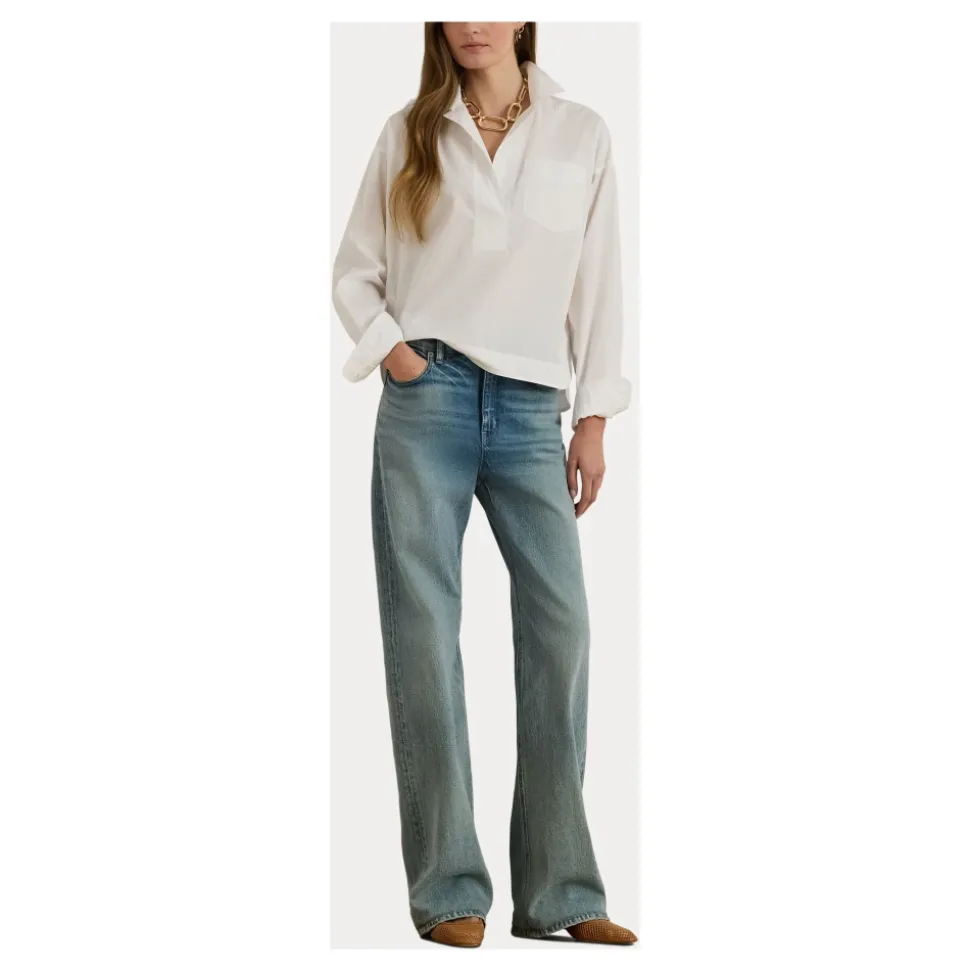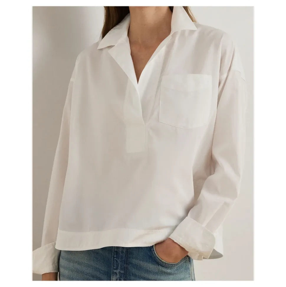 Ralph Lauren Broadcloth Cropped Skjorte kombinerer skarp broadcloth-skrædderi med en cropped silhuet for en poleret hverdags-knapskjorte i åndbar bomuld. Nøgleattributter: Hvid | Bomuld | Åndbart stof | Blød finish | Knaplukning foran | Knapmanchetter | Spidskrave | Lange ærmer | Cropped kant | Broadcloth vævning | Dimensioner & pasform: Cropped pasform | Sammensætning & pleje: 100% bomuld | Skånsom maskinvask 30°C
