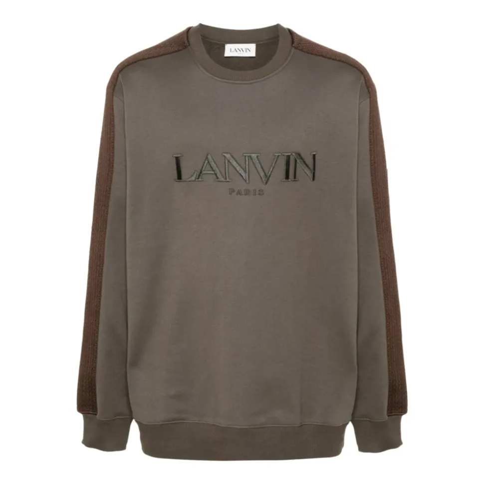 Opgrader din afslappede stil med Lanvin Broderet Logo Crew Neck Sweater, en mørk olivengrøn bomuldssweatshirt med et broderet logo på forsiden og motiv på siden. Designet med en ribstrikket crew neck, lange ærmer og en lige kant for et klassisk look. Produkt detaljer: Shadow | Brown | Bomuld | Ribstrikket crew neck | Lange ærmer | Lige kant | Dimensioner og pasform: Løs pasform | Sammensætning og pleje: 100% Bomuld | Maskinvask kold, tørretumbles ved lav varme.