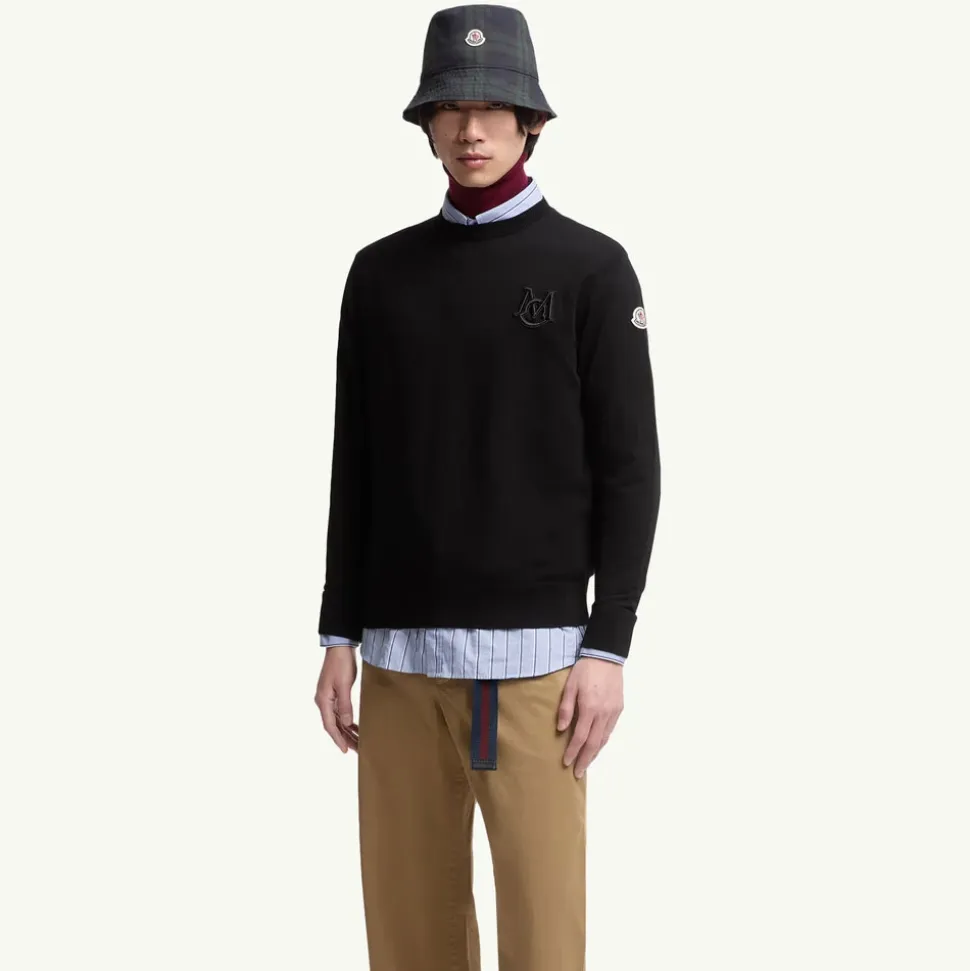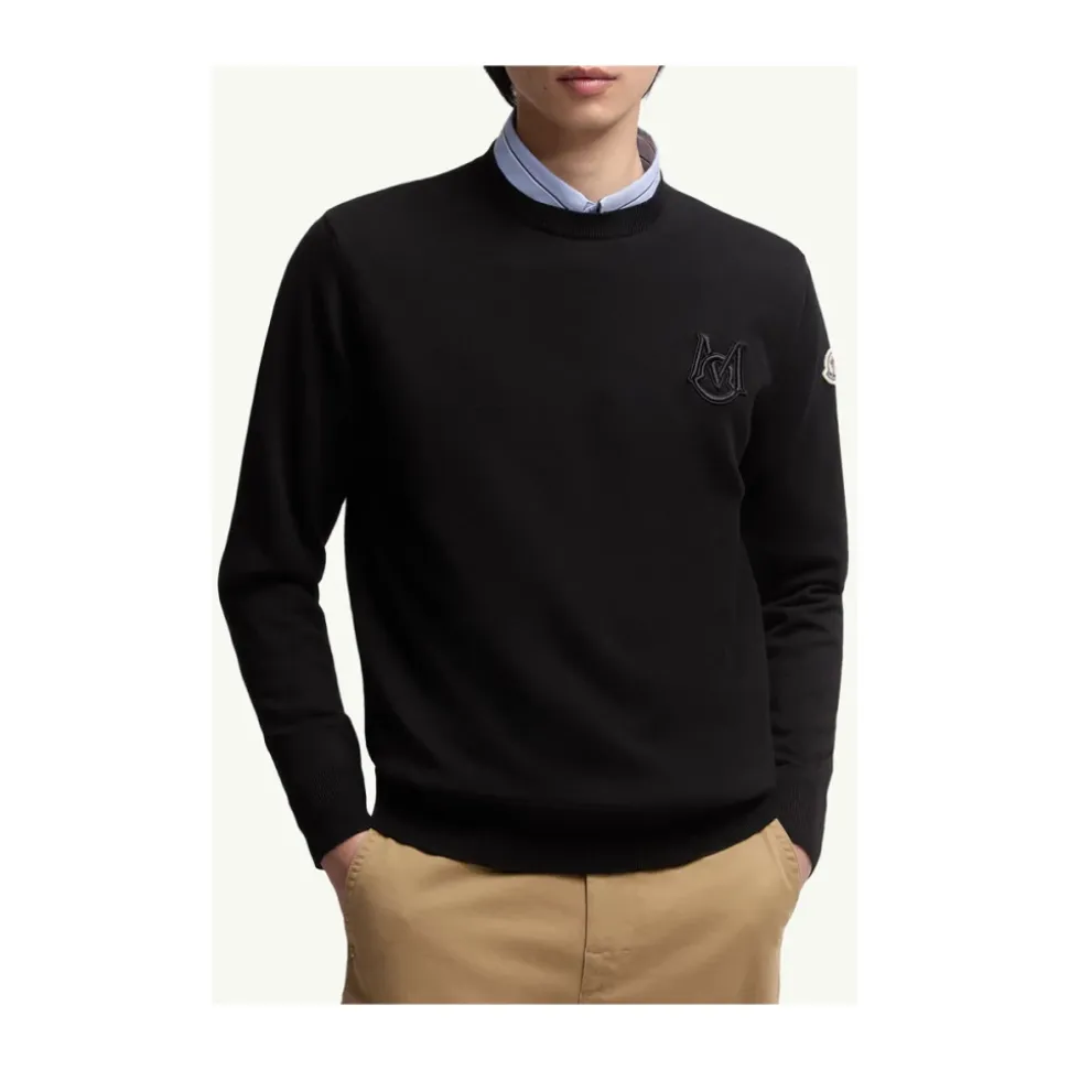 Forkæl din afslappede stil med denne Moncler sweatshirt. Lavet af 100% bomuld, den har en sort bomuldsstrik med rund hals og broderet monogrammærke. Modellen er 189 cm høj og har en størrelse Large på.