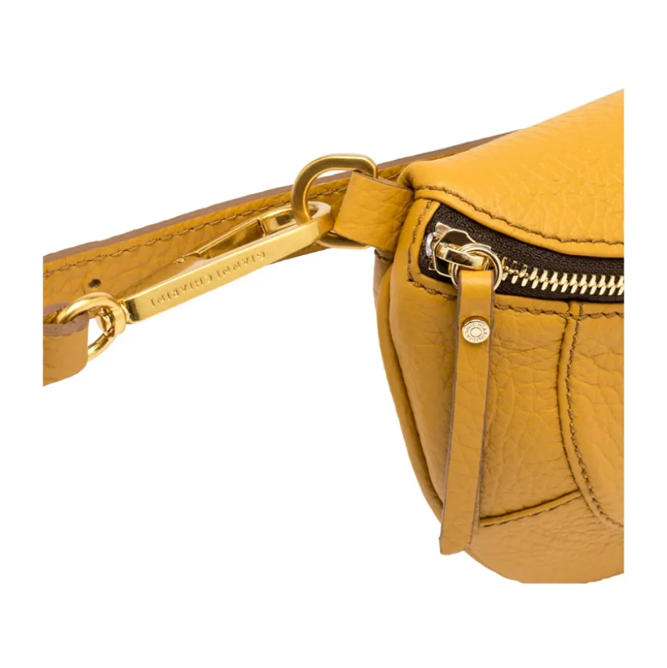 Gianni Chiarini Brooke Bæltetaske er en kompakt læderbæltetaske designet til håndfri alsidighed. Den har en aftagelig rem og et lynlåssikret hovedrum, så den nemt kan bæres som taljetaske eller crossbody. Nøgleattributter: Gul | Gylden amber | Læder | Justerbar og aftagelig rem | Lynlåslukning | Skjult baglomme | Indvendig lynlåslomme | Kan bæres som bælte eller crossbody | Støvpose medfølger | Halvmåne silhuet | Maxi grain lædertekstur | Guldfarvet hardware | Præget logo | Mål & pasform: Højde: 16 cm | Længde: 26 cm | Dybde: 7 cm | One size | Sammensætning & pleje: 100% Læder