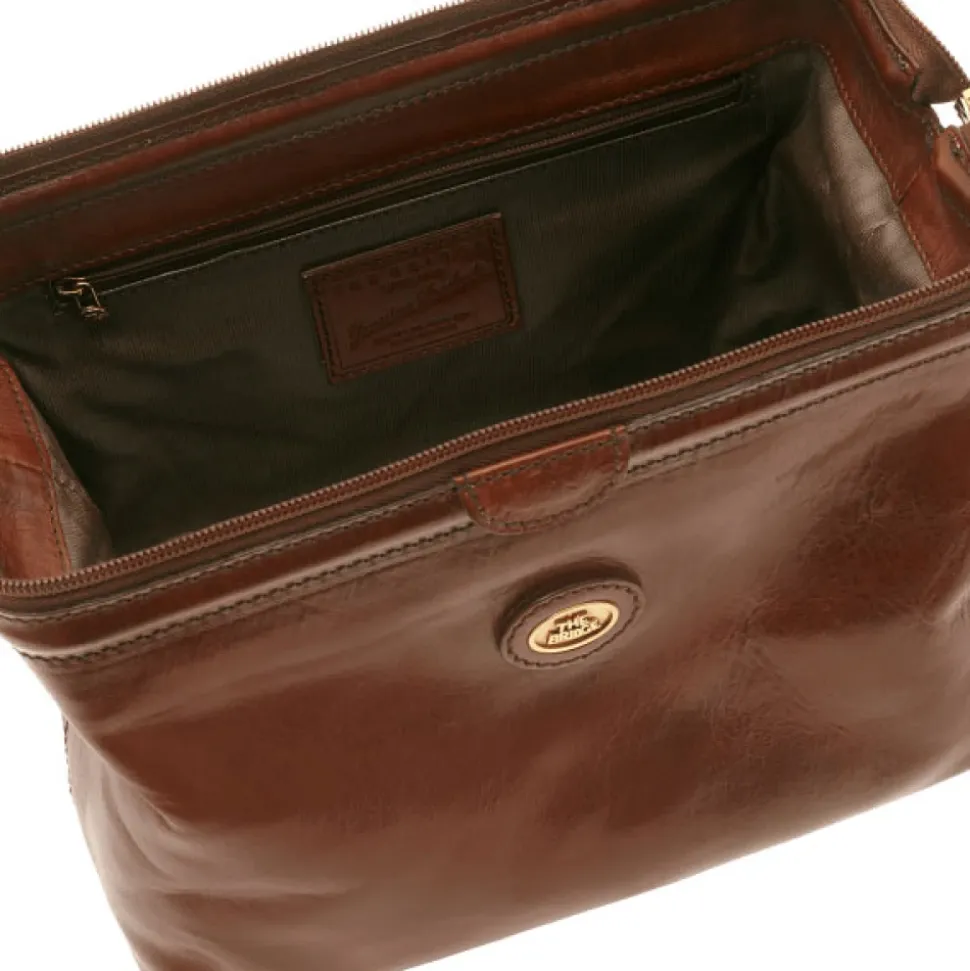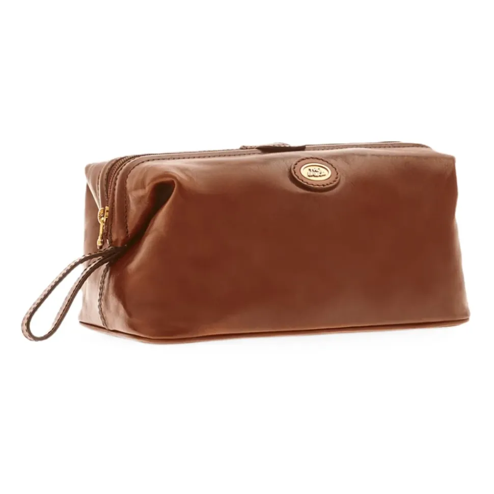 Opdag den luksuriøse beauty case fra The Bridge’s Made in Italy Linea story viaggio kollektion. Lavet af 100% læder i en rig brun farve, denne beauty case har en rummelig indvendig med lynlås lukning, intern lynlås og bred åbning. Mål: 26 x 12.5 x 15 cm. Inkluderer støvpose til forsendelse.