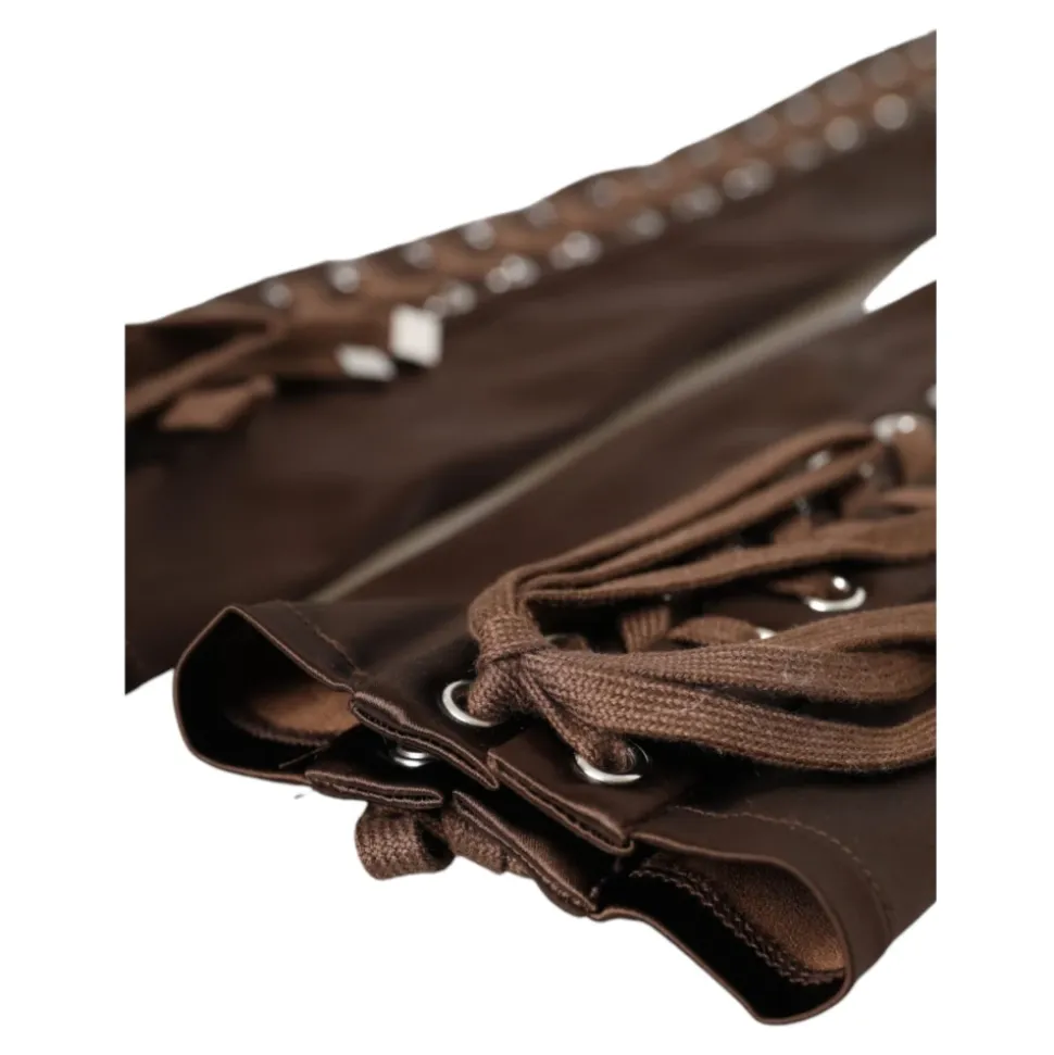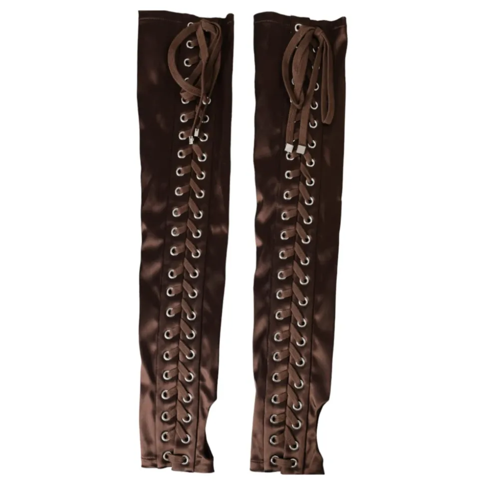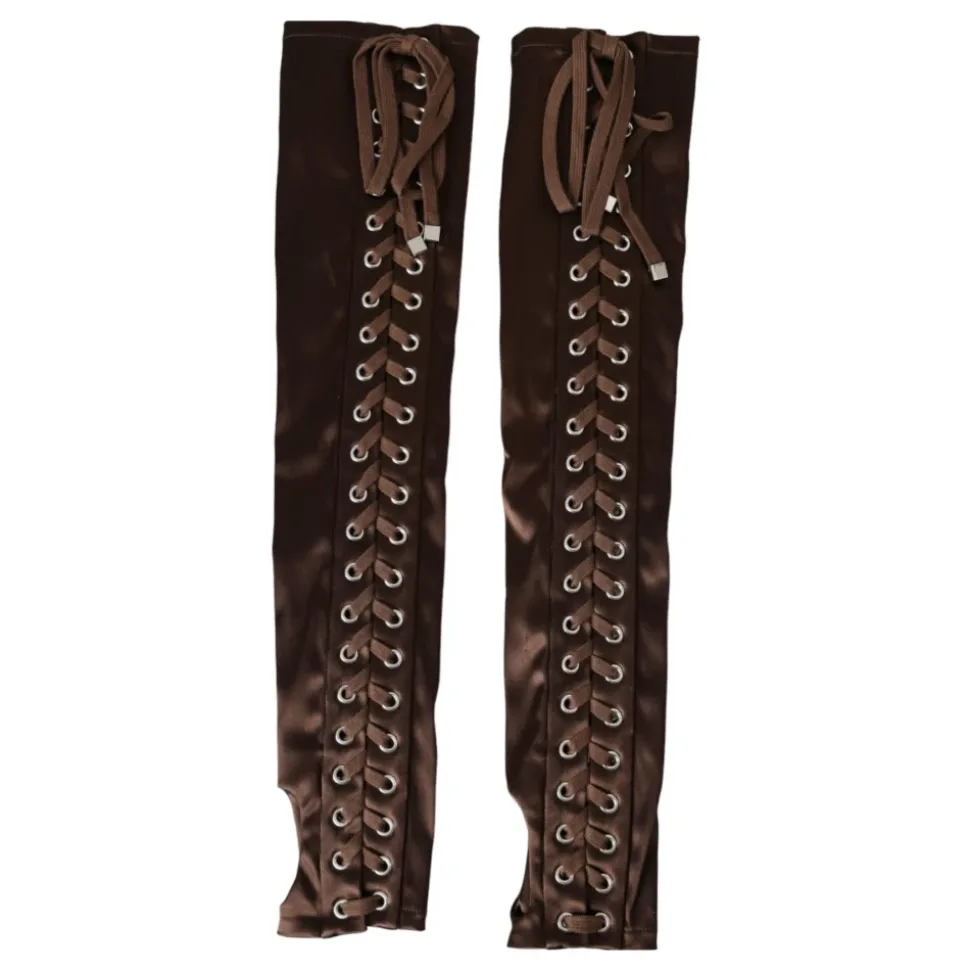 Forkæl dig selv med disse 100% autentiske Dolce & Gabbana albuelange fingerløse handsker. Lavet af en luksuriøs blanding af acetat, nylon og elastan, disse brune handsker har Dolce & Gabbana logo detaljer og er produceret i Italien med høj håndværksmæssig kvalitet. Perfekt til kvinder, der værdsætter kvalitet.