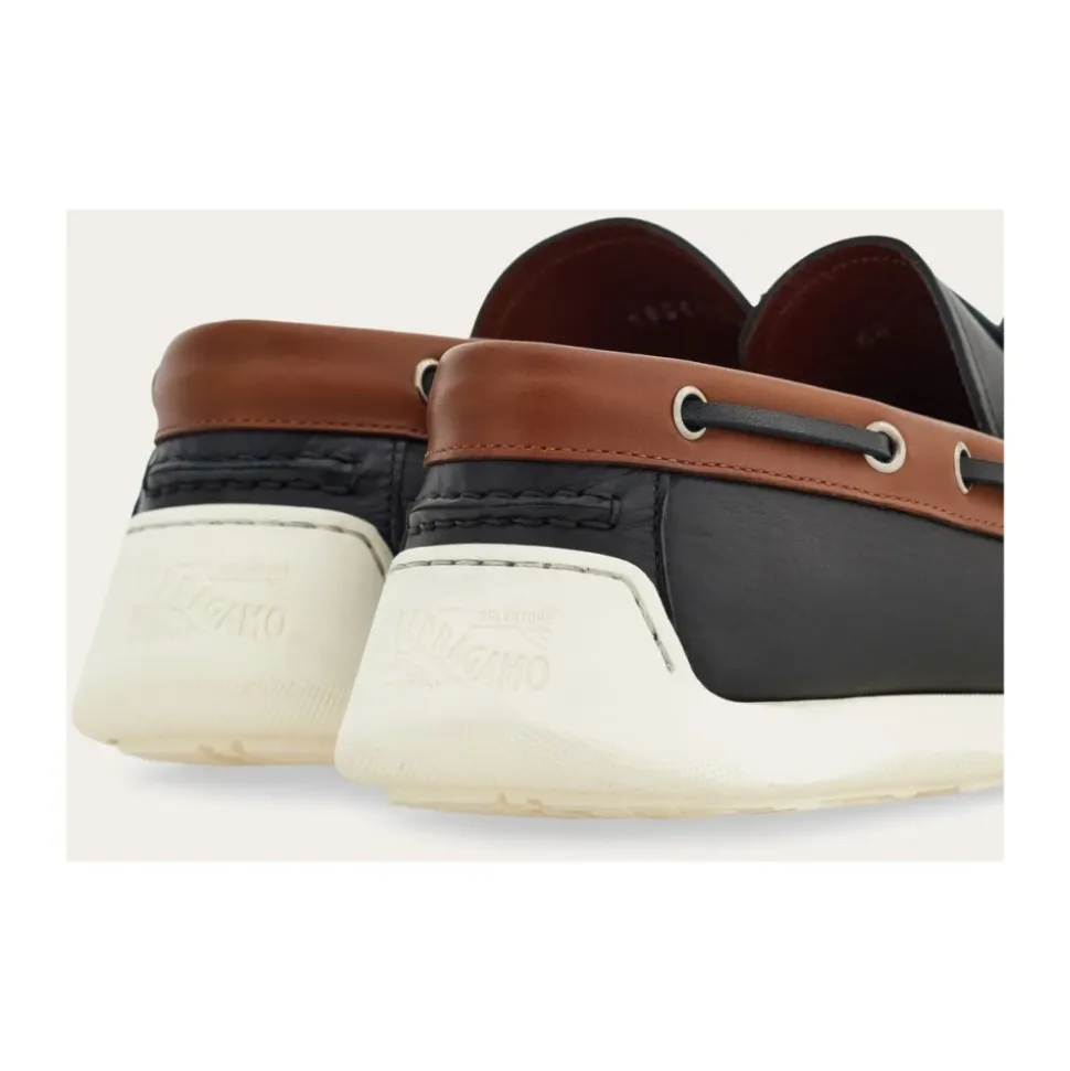 Oplev tidløs elegance med Ferragamos brune moccasin sko med sløjfe, perfekte til at tilføje et sofistikeret touch til ethvert outfit. Produkt detaljer: Brun | Læder | Sløjfe detalje | Dimensioner og pasform: Normal pasform | Sammensætning og pleje: 100% Læder | Aftørres med en fugtig klud.