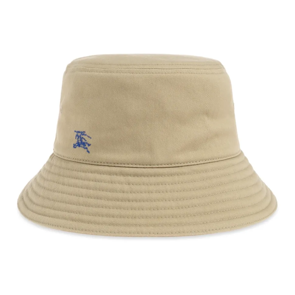 Oplev Burberrys Bucket Hat med Logo, et stilfuldt tilbehør fremstillet af førsteklasses bomuld og prydet med et broderet mørkeblåt rytterlogo-mønster. Denne hat kombinerer mode med funktion, hvilket gør den til en alsidig tilføjelse til enhver garderobe. Produkt detaljer: Grøn | Bomuld | Broderet mørkeblåt rytterlogo-mønster | Sammensætning og pleje: 100% Bomuld | Håndvask kun, må ikke tørretumbles.