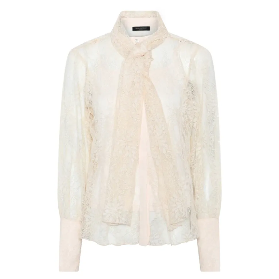 Bruuns Bazaar præsenterer BugleBBOmassa Blusen, en blondebluse defineret af sit lette, transparente stof og en fastsyet bindebånd i halsen, der giver et romantisk og poleret look. Brug den med nederdele eller skræddersyede bukser, eller under en blazer for et elegant hverdags- eller aftenlook. Nøgleattributter: Beige | Creme | Blonde | Let | Transparent | Fastsyet bindebånd i halsen | Lange ærmer med manchetter | Blondestof | Bindebåndsdetalje | Transparent design | Lange ærmer med manchetter | Feminint, tidløst udtryk